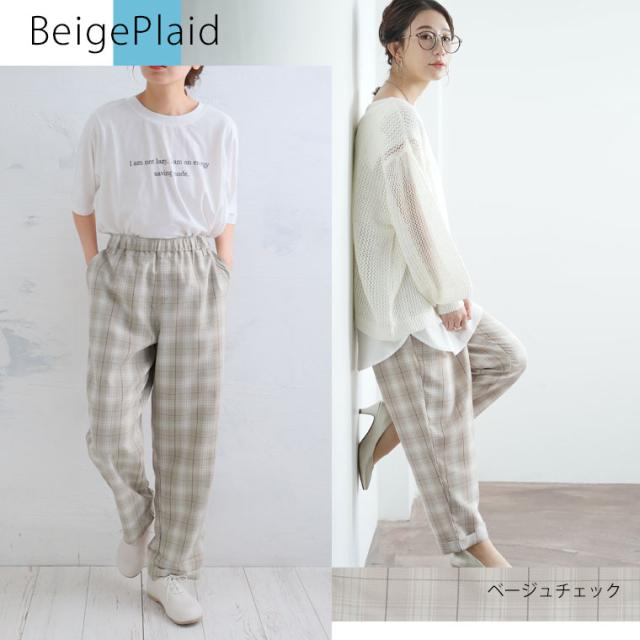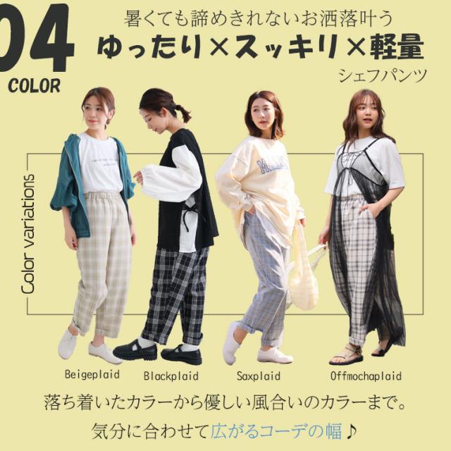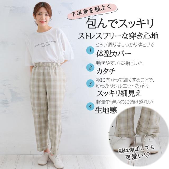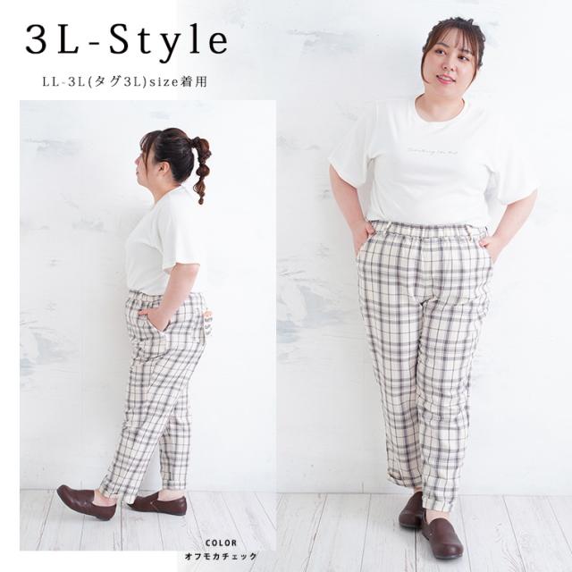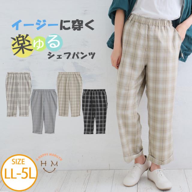 新作 大きいサイズ レディース パンツ | ハッピーカラー うす軽 ちょいゆる チェックパンツ [861106] LL 3L 4L 5L
