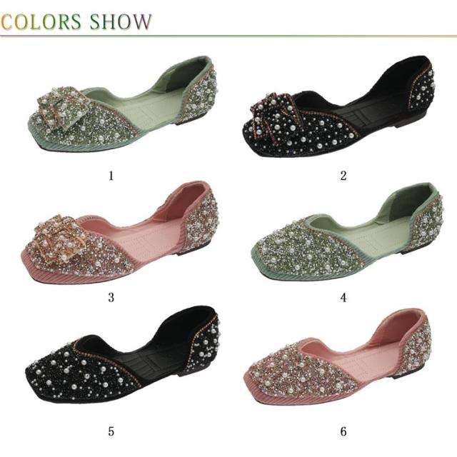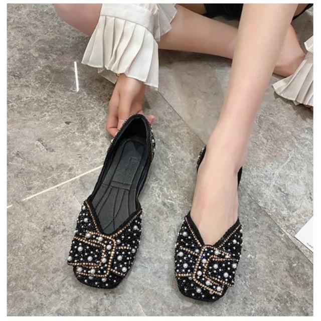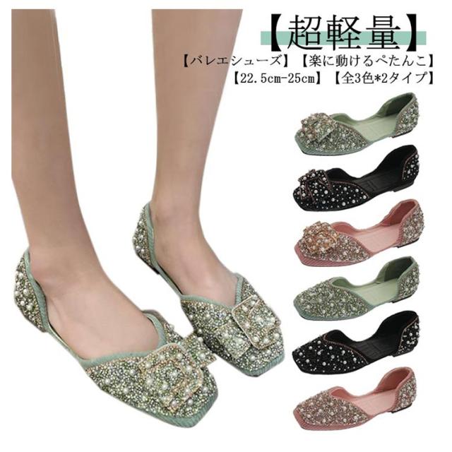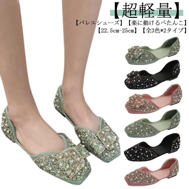 レディース バレエシューズ パンプス ぺたんこ ぺたんこ パール オシャレ フラット オフィス 通勤 結婚式 美脚 ラインストーン キラキラ パーティー スクエアトゥ