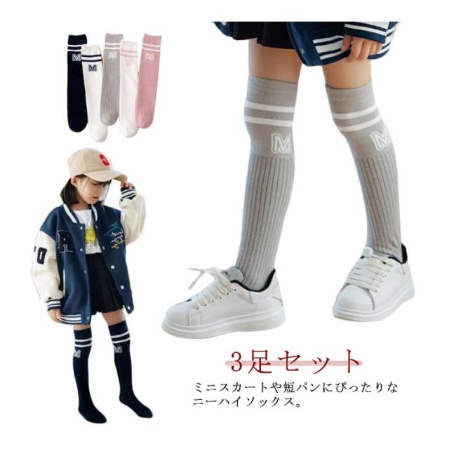 3足セット キッズ かかとなし ニーハイソックス 靴下 ニーハイ 大人っぽい コスプレ 女の子 33cm/43cm ダンス 幼児 ニーハイソックス 男の子 3足セット こども 子ども おしゃれ くつ下 靴下 ソックス 発表会 小学生 幼稚園 シンプル ダンス 運動会