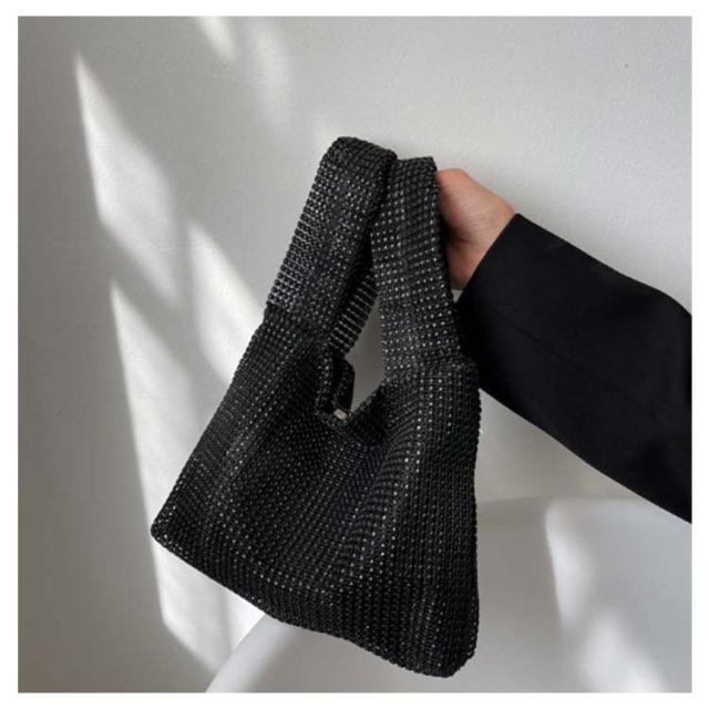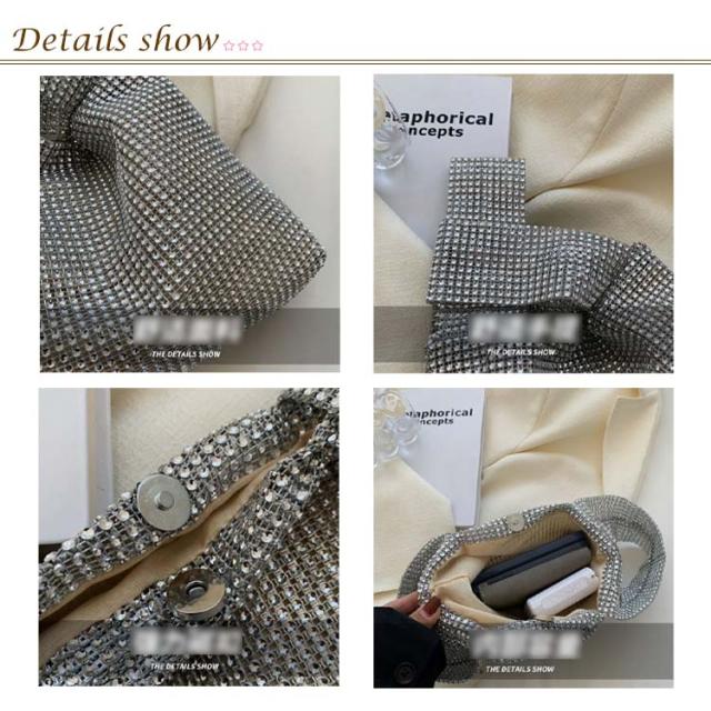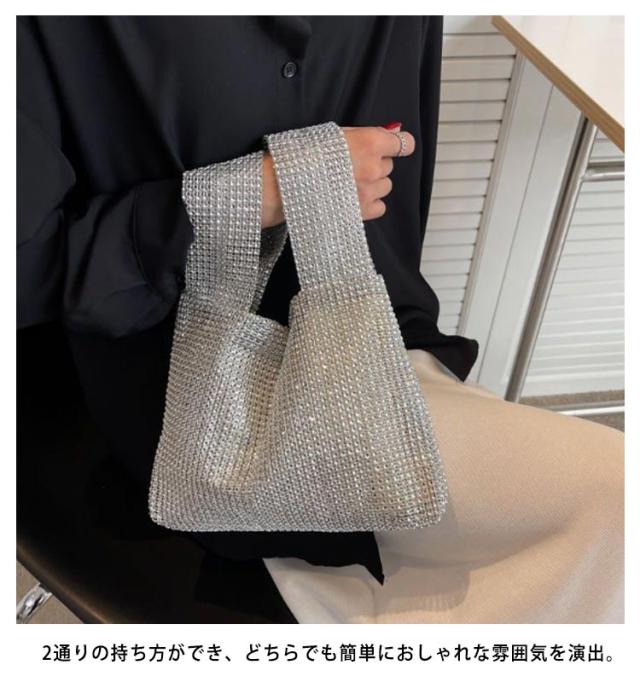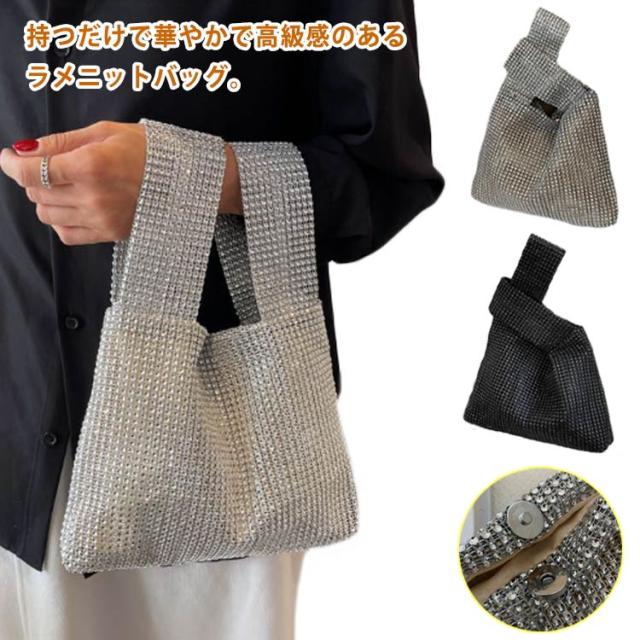 | 持つだけで華やかで高級感のあるラメニットバッグ。 らめく人造ダイヤモンド素材がスタイルのアクセントになります。 お出かけにちょうどいいのサイズ感も嬉しいポイント。 2通りの持ち方ができ、どちらでも簡単におしゃれな雰囲気を演出。 使い勝手が良く、通勤でも外出でもデイリーに使いたいアイテム。 | |