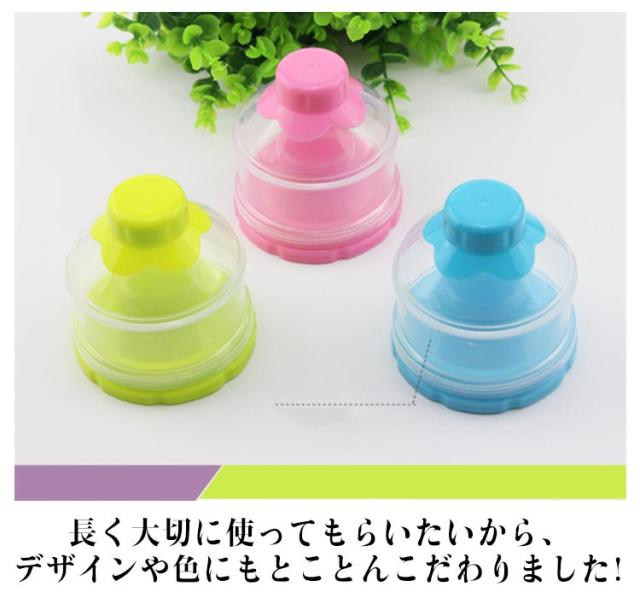 | お出かけや夜間の授乳に便利です♪ あらかじめ粉ミルクを計量して、3回分収納できるミルクケース登場です ! 持ち運びに便利なスリムサイズでお出かけにぴったり。夜間の授乳にも便利です。 また、授乳期間が終わっても小物入れや、キッズのおやつ入れに。 長く大切に使ってもらいたいから、デザインや色にもとことんこだわりました! | |