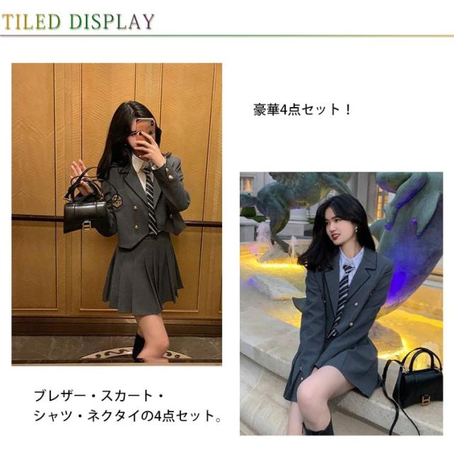 | 豪華4点セット!スタイリッシュでお洒落に決めたい人へ。 ブレザー・スカート・シャツ・ネクタイの4点セット。 ご家庭で手軽に洗えて、シワになりにくい素材を使用。 オールシーズン使える、しっかりとした生地の無地プリーツスカートです。 中学生・高校生の学生制服や行事ごと、なんちゃって制服にもおすすめです。 通学用はもちろん、入学式、学園祭、文化祭、結婚式、発表会など、フォーマルなシーンにもピッタリなスーツです。 | |