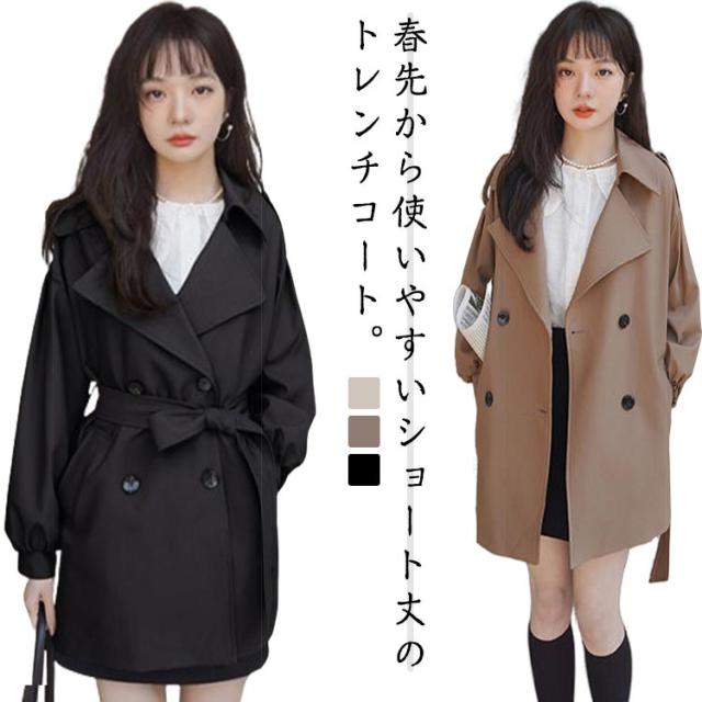 トレンチコート レディース 春 スプリングコート ショート アウター コート 上着 撥水 ミドル丈 羽織り aライン ライトアウター トレンチ コート 通勤 通学 きれいめ おしゃれ 可愛い カジュアル オフィス 卒業式 入学式 結婚式 披露宴