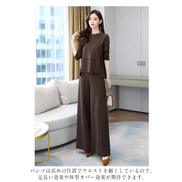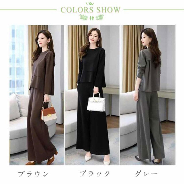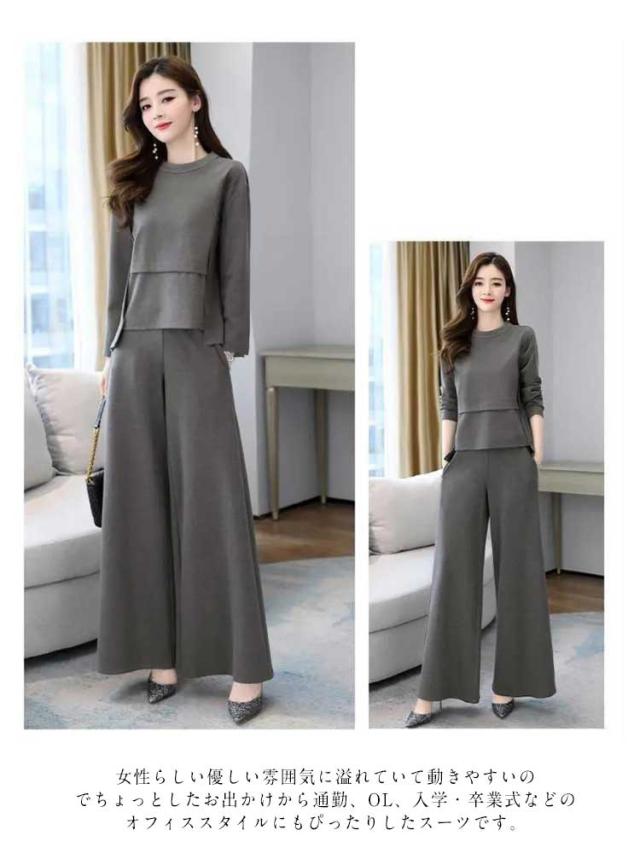 ママスーツ パンツスーツ セットアップ レディース パンツドレス ガウチョパンツ 入学式 2点セット ワイドパンツ ロング パンツ ブラウス シャツ フォーマル 春 夏 秋 長袖 大きいサイズ オフィス OL 通勤 カジュアル 着痩せ