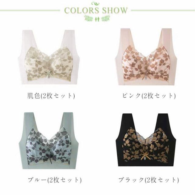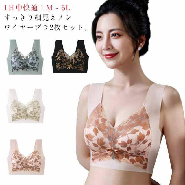 2枚セット ブラジャー 大きな胸を小さく見せるブラ レース ノンワイヤー ブラトップ 着やせ スッキリ 細見え 大きいサイズ かわいい おしゃれ ストレッチ 脇高 小さく見える 痩せ見え アンダーウェア 誕生日 プレゼント