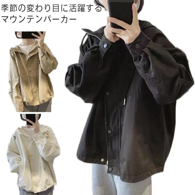 マウンテンパーカー レディース 春 アウター ブルゾン ライトアウター 春物 春先 ジャケット コート ナチュラル 羽織り パーカー スプリングコート 大人 マンパ ゆったり 大きいサイズ フード付き 裏地付き きれいめ 通勤 デイリー 2024新作 【送無】