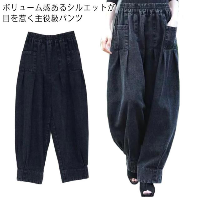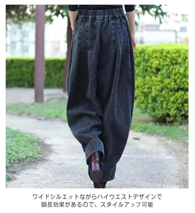 デニム ワイドパンツ レディース カーブパンツ ワイド ゆったり ハイウエスト ゴムウエスト デニムパンツ バルーンパンツ サルエルパンツ タック入り 脚長効果 体型カバー 大人 カジュアル キレイめ トレンド ボトムス 春 夏 秋 ジーパン ジーンズ 【送料無料】