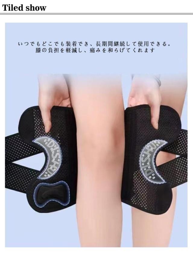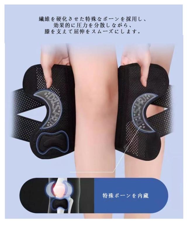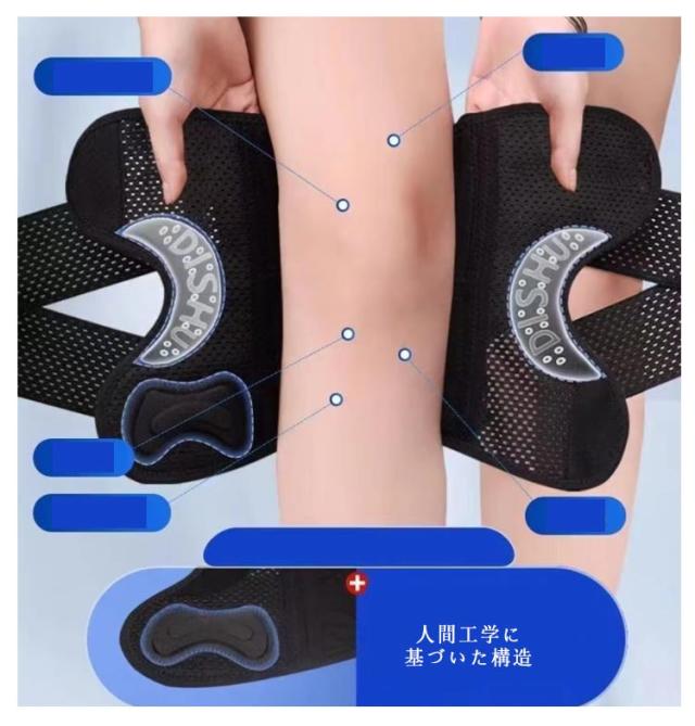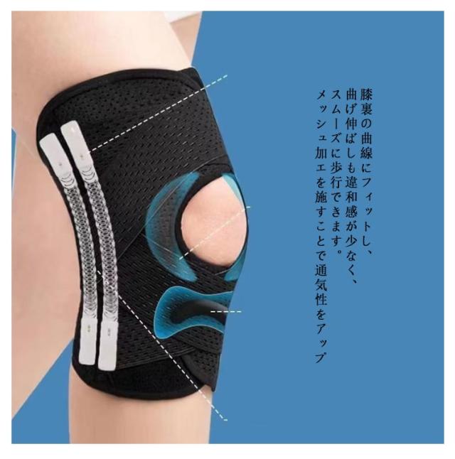 | 痛みをしっかりサポート いつでもどこでも装着でき、長期間継続して使用できる。 膝の負担を軽減し、痛みを和らげてくれます 特殊ボーンを内藏 繊維を硬化させた特殊なボーンを採用し、効果的に圧力を分散しながら、膝を支えて屈伸をスムーズにします。 人間工学に基づいた構造 膝裏の曲線にフィットし、曲げ伸ばしも違和感が少なく、スムーズに歩行できます。メッシュ加エを施すことで通気性をアップ 前あきデザイン 膝部分の穴あき設計により足の動きを妨げず、関節の残りの部分と適切に動きを合わせることができます。 | |