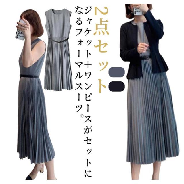 フォーマルスーツ 上品 レディース 2点セット ママスーツ プリーツワンピース スーツ 結婚式 母親 入学式 卒業式 ワンピーススーツ セットアップ 七五三 お宮参り セレモニースーツ 参観日 黒 母 女性 服装 オフィス 通勤 フォーマル カジュアル ジャケット