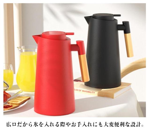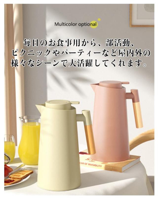 | おうち時間を楽しむ魔法瓶。まほうびん構造だから電気を使わず、保温・保冷で1年中大活躍。 真空二重構造になっているので保冷保温効力◎夏は冷たい飲み物を、冬は温かい紅茶など、年中お付き合いができるポット。 ガラス製の中瓶!ステンレス製のポットとは違い、匂いうつりしにくく、茶渋汚れやコーヒーのステインなどもつきにくいのがポイント。 ふたが着脱でき、給水が簡単。 広ロだから氷を入れる際やお手入れにも大変便利な設計。 押すだけで注げるワンタッチレバーで片手でもらくらく注げます。 倒れても漏れにくい設計なので持ち運びにも便利です。 毎日のお食事用から、部活動、ピクニックやパーティーなど屋内外の様々なシーンで大活躍してくれます。 | |