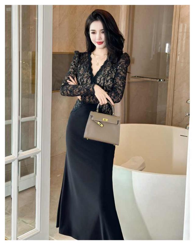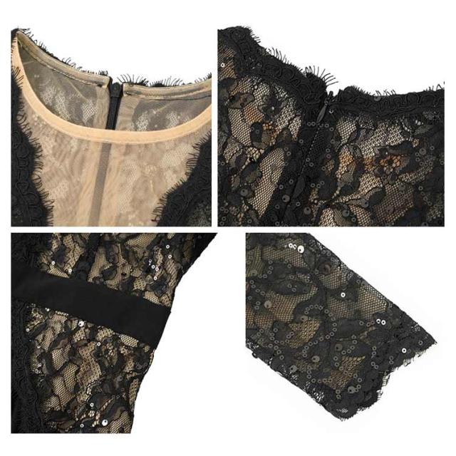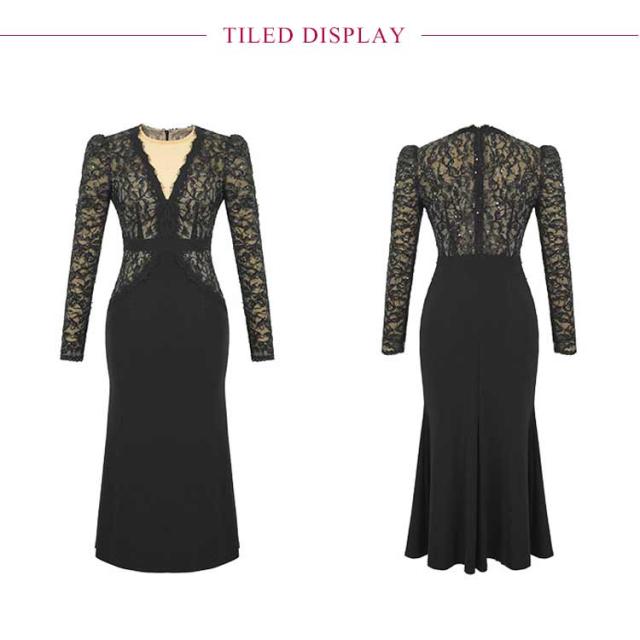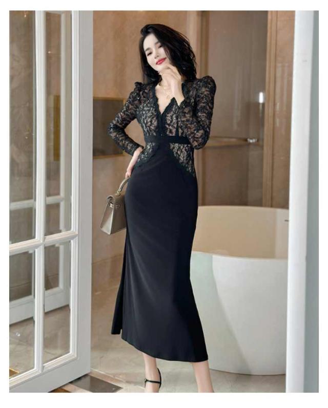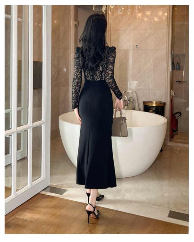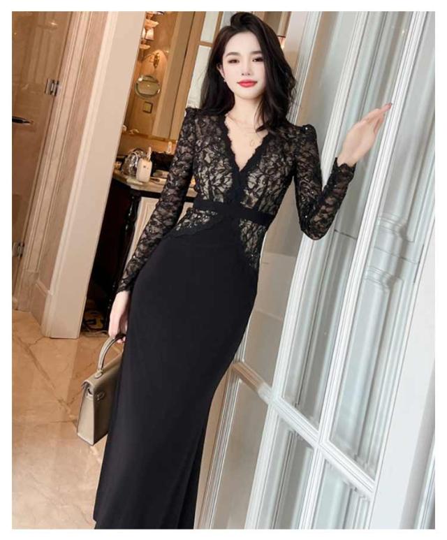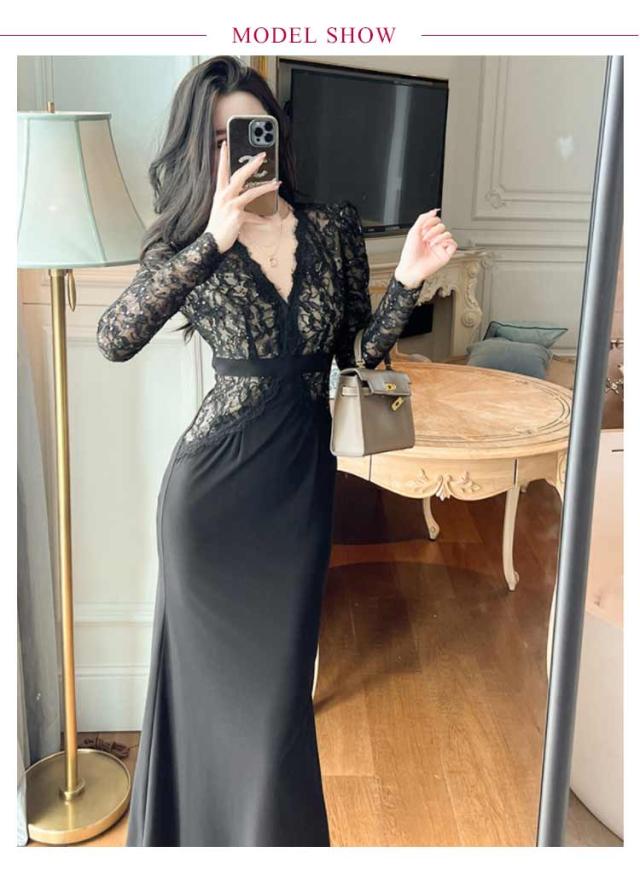 パーティードレス ブラックドレス 黒ワンピ タイトワンピ マーメイド ワンピース シースルー レース 透け感 黒 タイト ワンピース 長袖 ロング丈 きれいめ タイトワンピース 成人式 卒業式 謝恩会 二次会 お呼ばれ レディース オケージョン