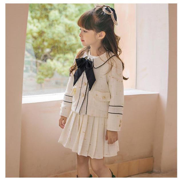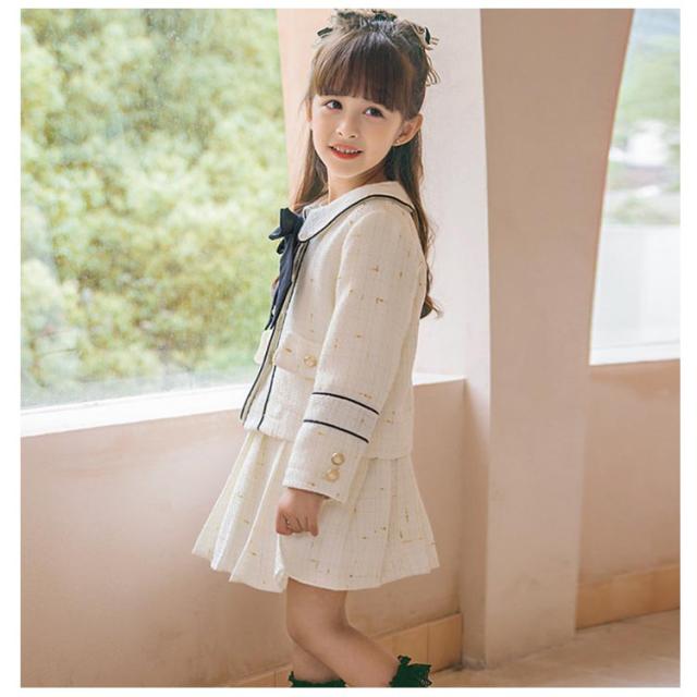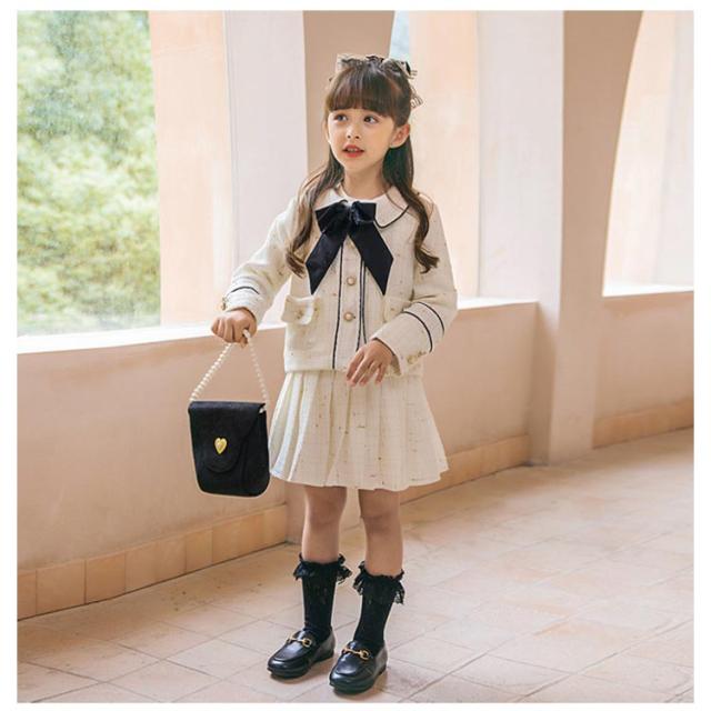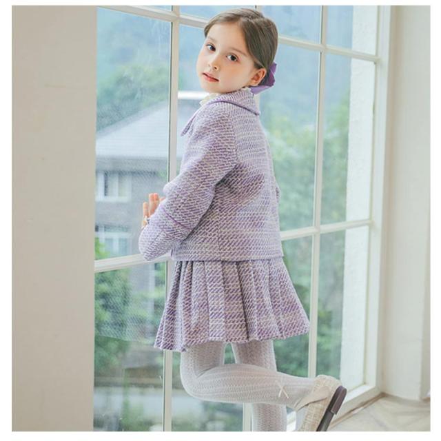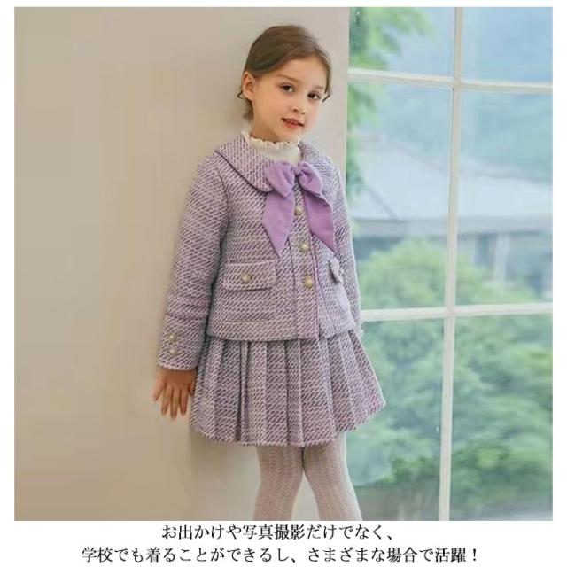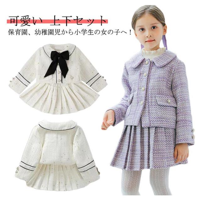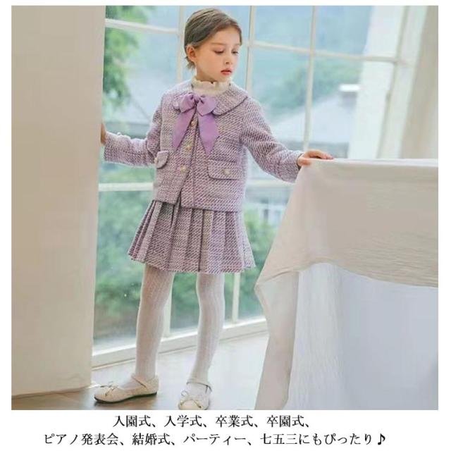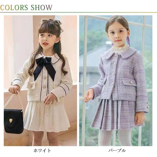 入学式 スーツ 女の子 卒園式 110 120 130 140 150 小学校 入学式 女の子 上下セット ツイードジャケット スカート キッズ フォーマル 子供スーツ パープル ホワイト 結婚式 七五三 撮影 発表会 リボン付き 子供服 可愛い 送料無料