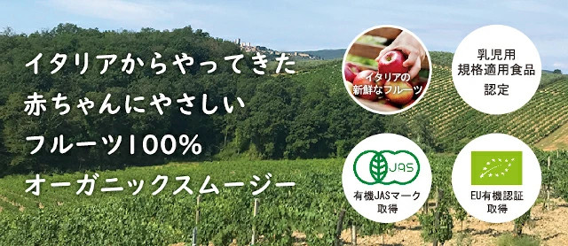 「イタリア発!有機フルーツと有機野菜のみを使用したオーガニックスムージー」 |