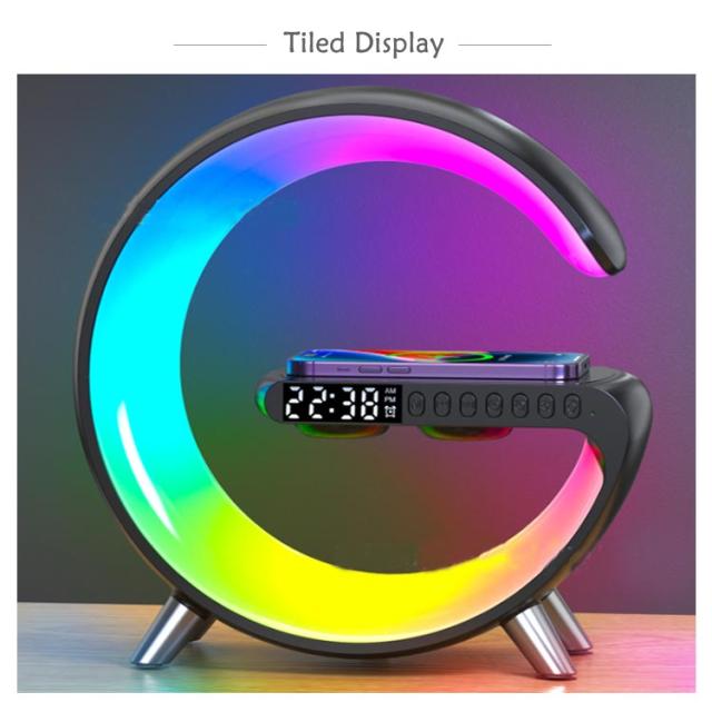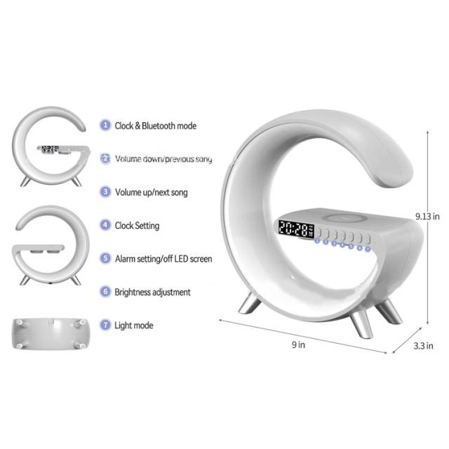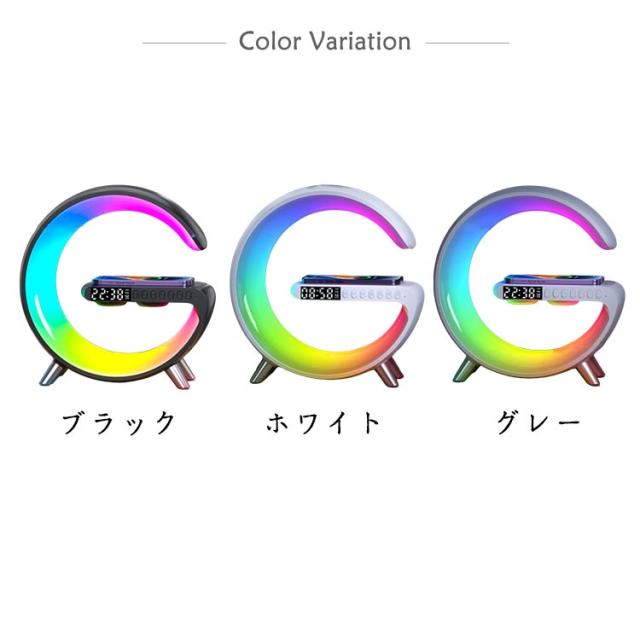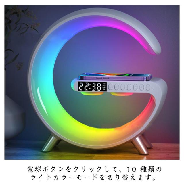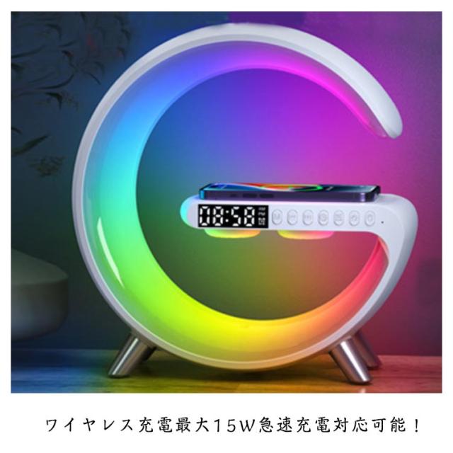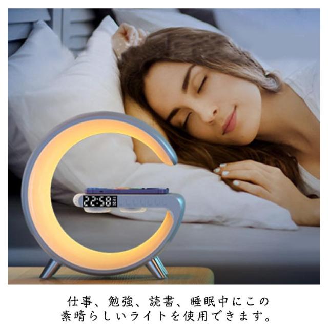 スピーカーライト ポータブルスピーカー ブルートゥース スピーカー ワイヤレス充電器 スマート 目覚まし時計 ナイトライト4in1 雰囲気ランプ 時計付 卓上ライト 枕元ライト インテリアライト おしゃれ 置き型 デスクライト 夜灯 プレゼント 新築祝い