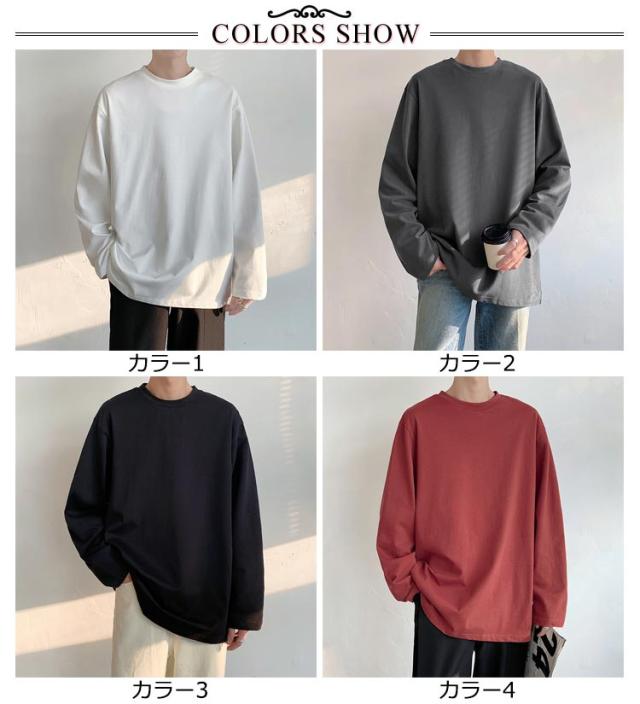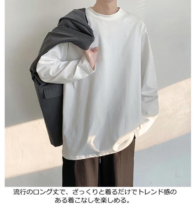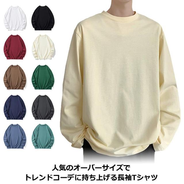 送料無料 tシャツ メンズ 長袖 ロンT オーバーサイズ ゆったり 長袖Tシャツ クルーネック ロングTシャツ 無地 シンプル 綿 無地 Tシャツ カットソー トップス インナー ユニセックス お揃い ビッグシルエット おしゃれ カジュアル リラックス