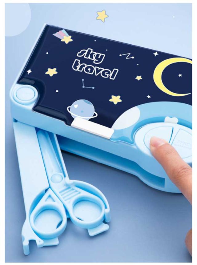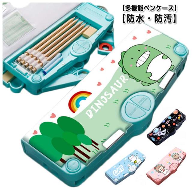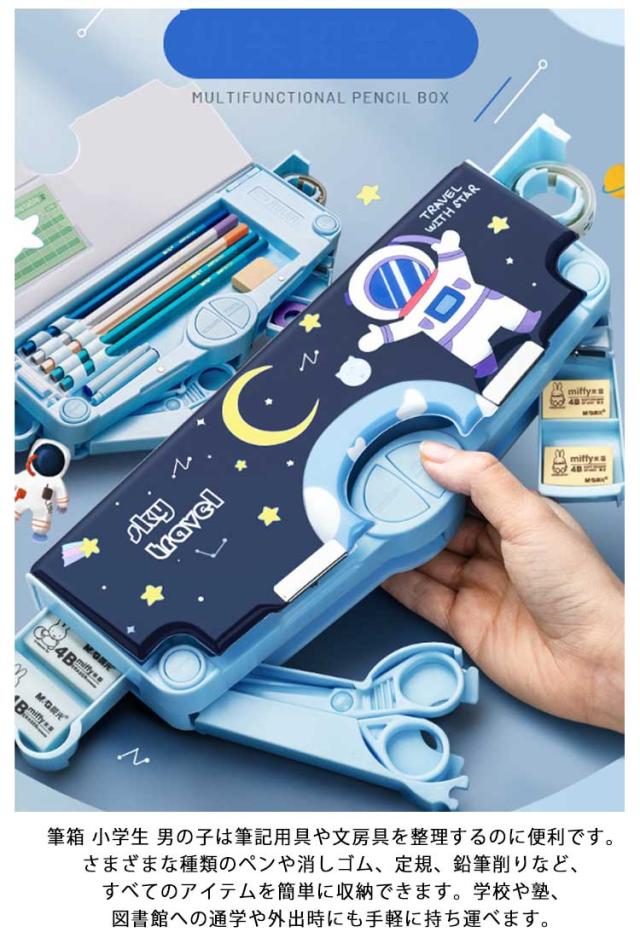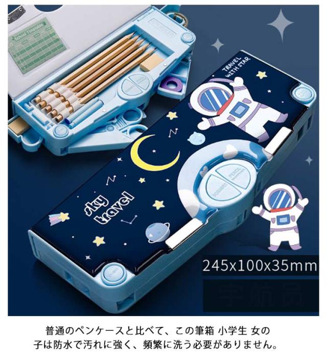 ペンケース 多機能 筆削り付き ふでばこ 筆箱 箱型 男の子 女の子 ぼたん筆箱 鉛ハサミ 消しゴム 物差し テープ収納リング 筆入れ 時間割表 小物入れ 大容量 耐久性 マグネット コンパクト 小学生 小学校 ペンケース 文具 鉛筆ケース 誕生日 プレゼント