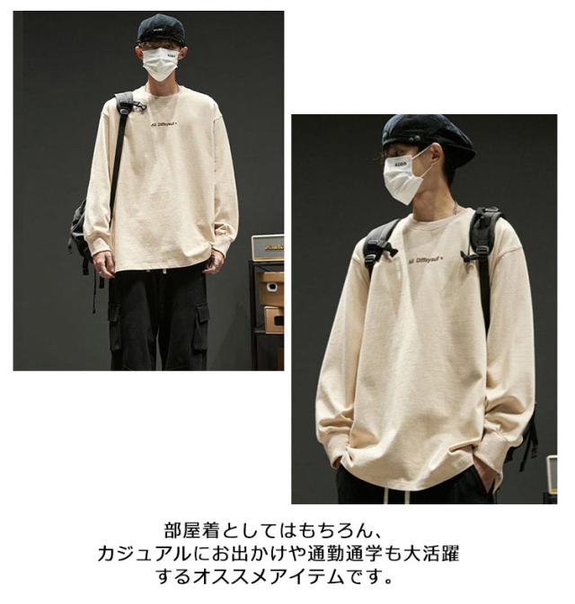 長袖Tシャツ メンズ 韓国 大きいサイズ ゆったり tシャツ ロゴ プルーオーバー クルーネック おしゃれ 綿 春 ロンt 柔らか 部屋着 トップス オーバーサイズ インナー ビッグシルエット シンプル 通勤 通学 カジュアル