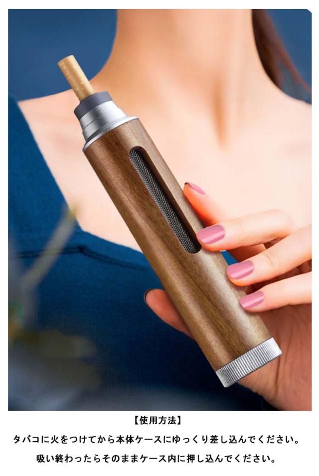 | 葉巻スタイルでエレガントなおしゃれ灰皿です。 喫煙時でも灰が落ちないクリーン設計が特徴です。 本体は厳選の天然クルミ木材を採用。 断熱性・耐久性も素晴らしく使い勝手は抜群です。 3種のシリコンホルダー完備で一部のビッグサイズ以外のほぼどんなタバコにも適合。 お掃除メンテナンスは下フタを回すだけの超カンタンでラクラク。 吸い殻は最大約4本も収納できる大容量ケースです。 【使用方法】 タバコに火をつけてから本体ケースにゆっくり差し込んでください。 吸い終わったらそのままケース内に押し込んでください。 | |