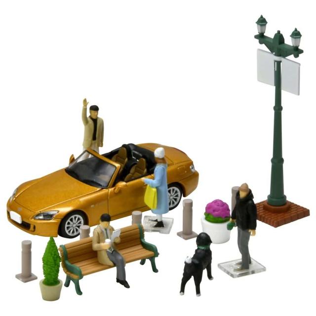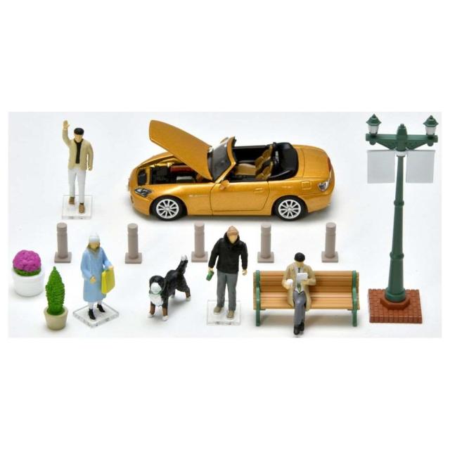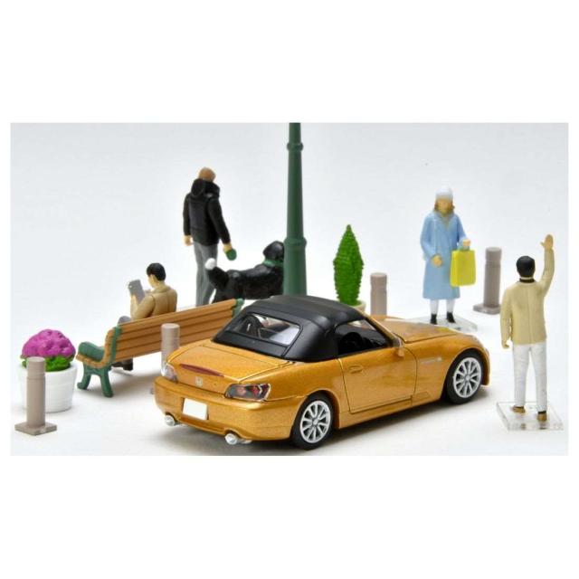 ■セット内容:(1)ホンダS2000(トミカリミテッドヴィンテージNEO)(2)クルマのオーナー(3)ショッピングを楽しむ人(4)犬と散歩する人(5)バーニーズマウンテンドッグ(6)ベンチで休憩する人(7)ベンチ(8)街灯(9)ポール(10)植木(11)花壇