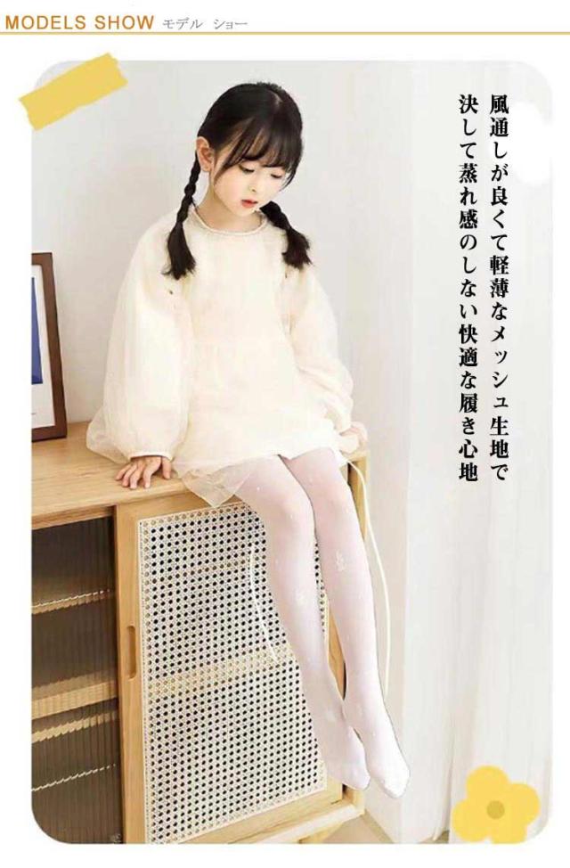| 2足セット!ホワイトの地色にキュートな柄が付き軽薄な透明生地 女の子用タイツ 風通しが良くて軽薄なメッシュ生地で決して蒸れ感のしない快適な履き心地 生地にはハイストレッチ性があるので、フィット感が高くて窮屈感もしません 上質な仕上がりなので決してでこぼこしない、長く歩いてもストレスフリー スカートやワンピースとは相性バツグン、春夏シーズンに必ず大活躍 色使いは清潔感のホワイトにして、コーデにも馴染みやすい | |