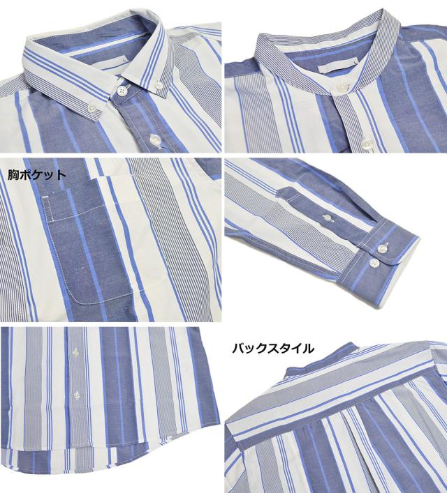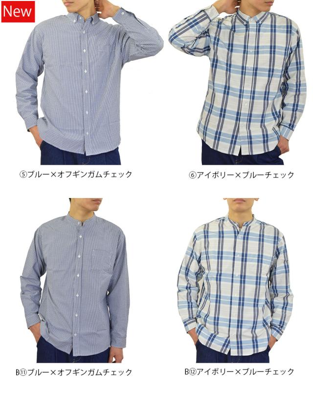 シャツ メンズ ボタンダウン バンドカラー 長袖 シャツ ストライプシャツ チェックシャツ ボタンダウンシャツ バンドカラーシャツ 長袖シャツ ブロードシャツ ストライプ チェック ビジネスシャツ カジュアルシャツ ブロード 生地 綿 ポリエステル キレカジ 春 夏 秋 冬 新作