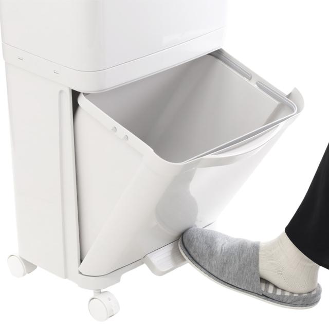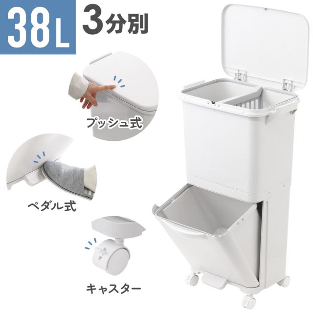 ゴミ箱 2段 タテ型 キャスター付き ダストボックス 縦型 分類ワゴンペール 38L 24L 14L ライトグレー 分別ペール ワゴンペール キャスター 移動ペール 隙間収納 プッシュ ペダル 分別 リサイクル おもちゃ 収納