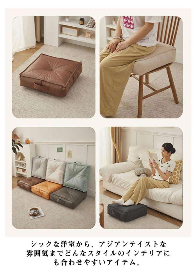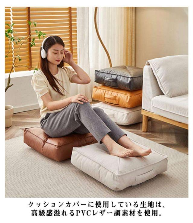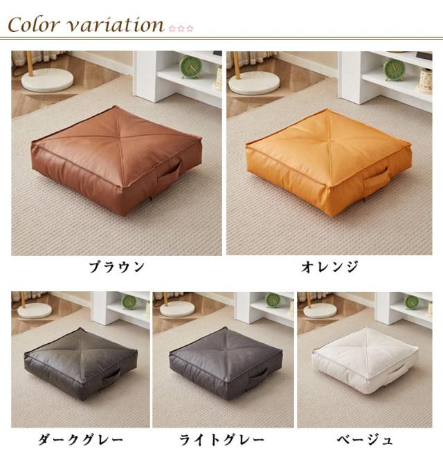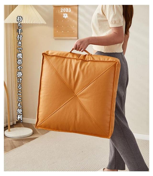 | 長時間座った時の痛み、クッションのヘタり、フローリングが冷たいなど、そんなお悩みの方にオススメなクッションです。 クッションカバーに使用している生地は、高級感溢れるPVCレザー調素材を使用。 汚いならサッと拭けるのでお手入れ簡単。 持ち手付きで携帯や掛けることも便利。 シックな洋室から、アジアンテイストな雰囲気までどんなスタイルのインテリアにも合わせやすいアイテム。 | |