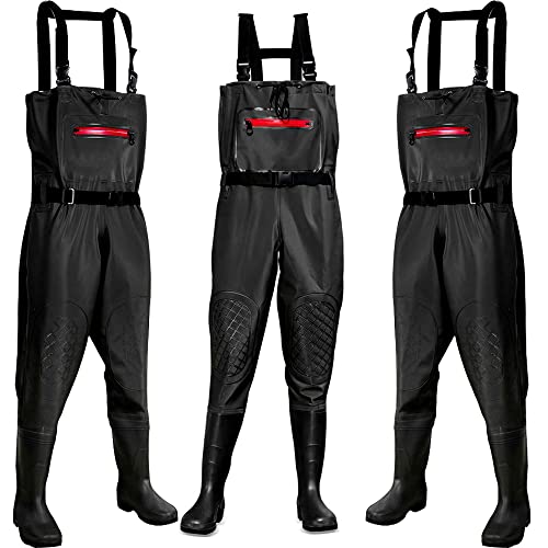 KoiHouse ウェーダー チェストハイウェーダー ?力防水 釣り PVCウェーダー 大雨 防災 対策 胴付き長靴 全5サイズ (24CM, ブラック)