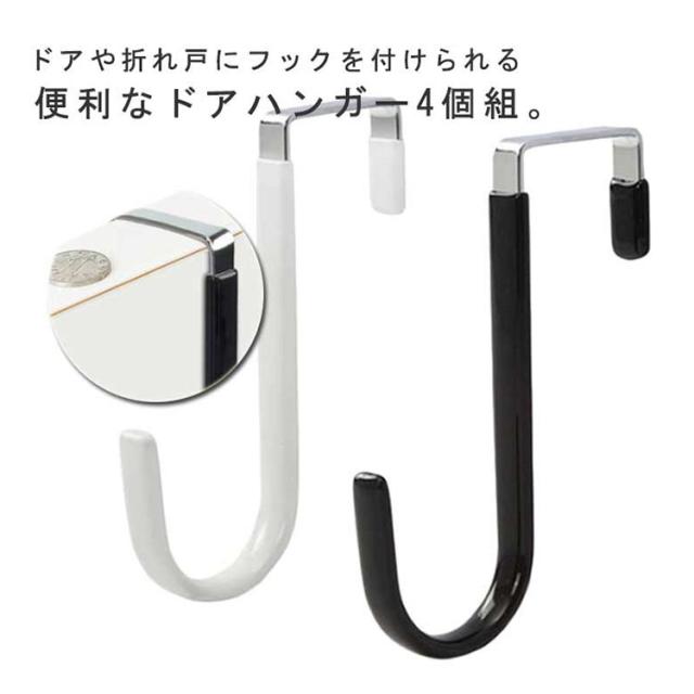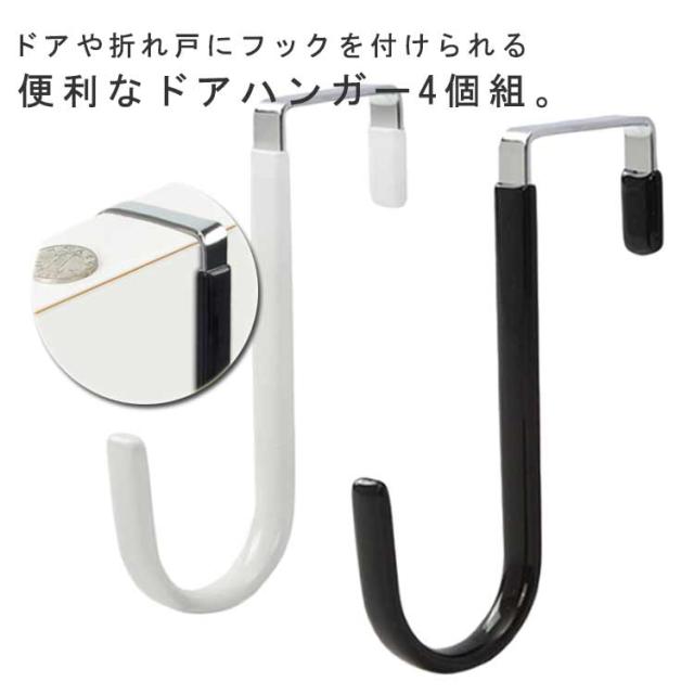 収納 4個組 S字フック ドアフック ドアフックハンガー ロング 玄関ドア カバン掛け 室内干し ドアフック 掛ける フック 帽子掛け 滑り止め キッチン リビング 浴室 服 タオル 掛け 吊り下げ 便利グッズ おしゃれ 白 黒
