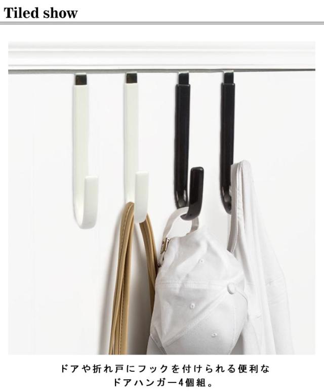 | ドアや折れ戸にフックを付けられる便利なドアハンガー4個組。 欲しい所に、好きな数だけつけられます。 お出掛け時のコートやカバン、お掃除グッズやお洗濯アイテムなどをまとめて掛けられます。 インテリアを邪魔しないシンプルなデザインです。 | |