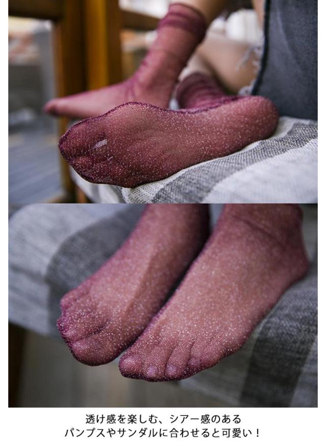 レディース ラメ シアーソックス 薄手 大人 靴下 3足セット 透け感 くつ下 シースルーソックス シースルー かわいい おしゃれ カジュアル ソックス