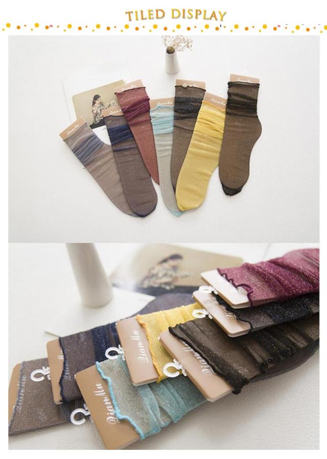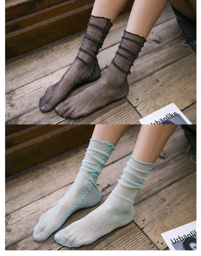 | 足元にキレイに演出、ラメ入りのシースルー靴下3足セット! 履き口はフリルデザインは女性の甘さを引き出します。 透け感を楽しむ、シアー感のあるパンプスやサンダルに合わせると可愛い! 普段からはもちろん、発表会やパーティーに。イベント衣装やダンス衣装、コスチュームに取り入れても目立つ事間違いなし。 | |