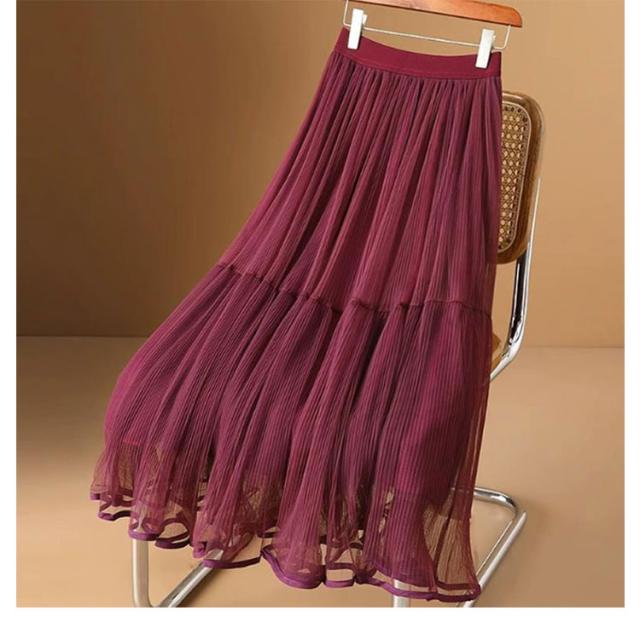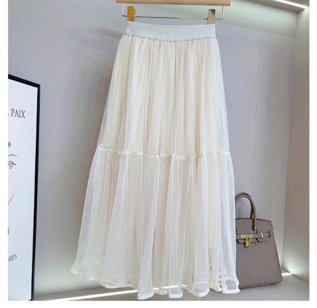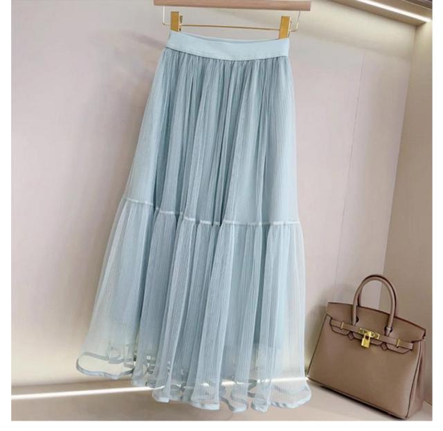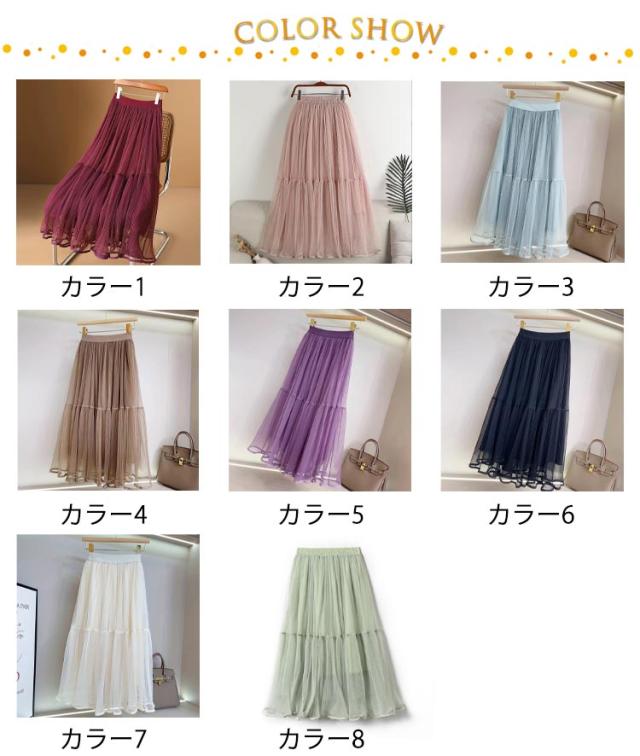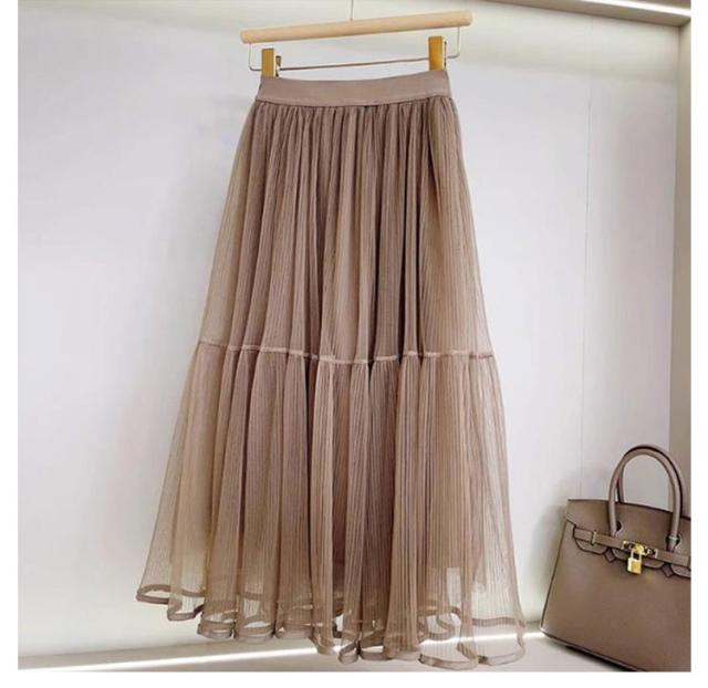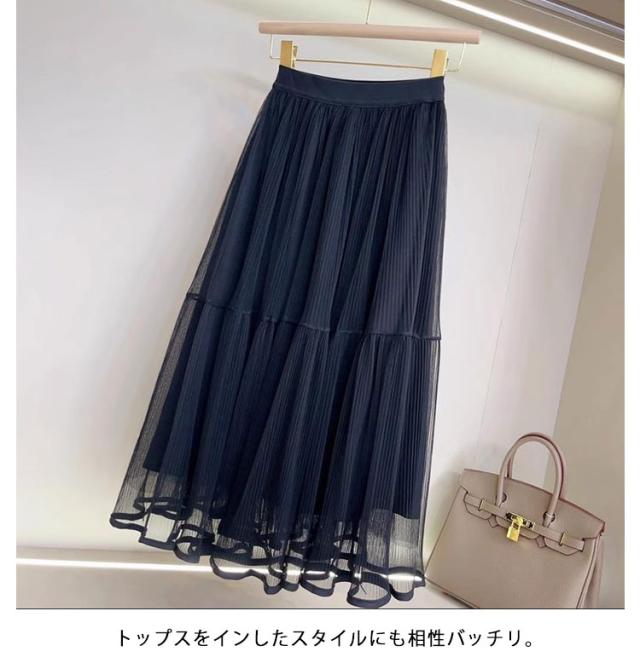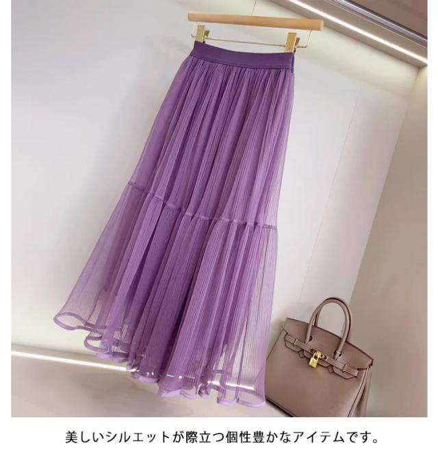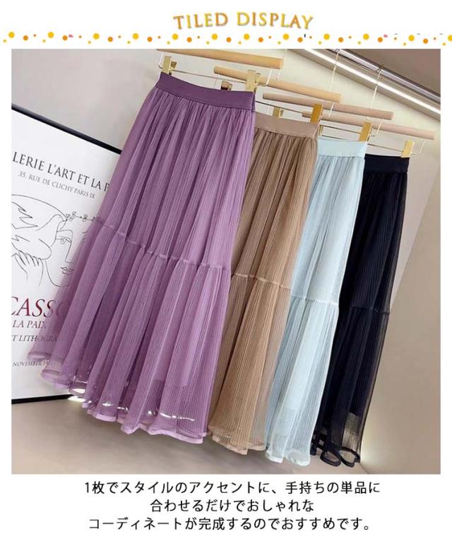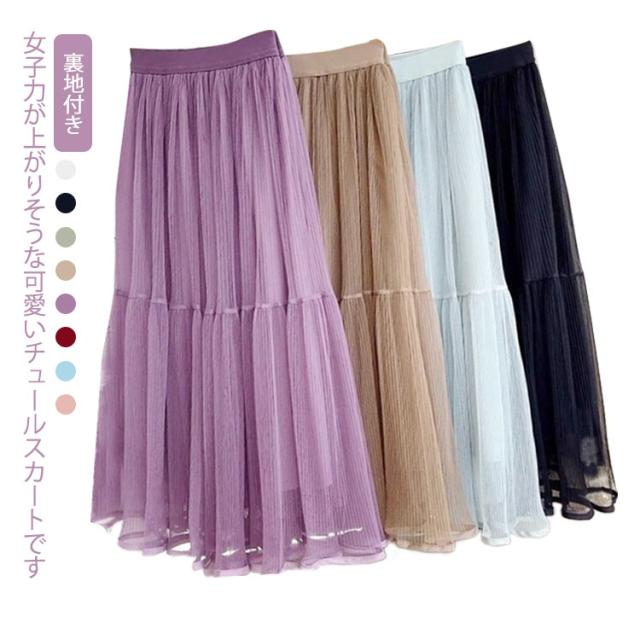 かわいい ロング ロングスカート プリーツスカート スカート 裏地付き ボトムス チュールスカート フレアスカート シースルー カジュアル おしゃれ レディース