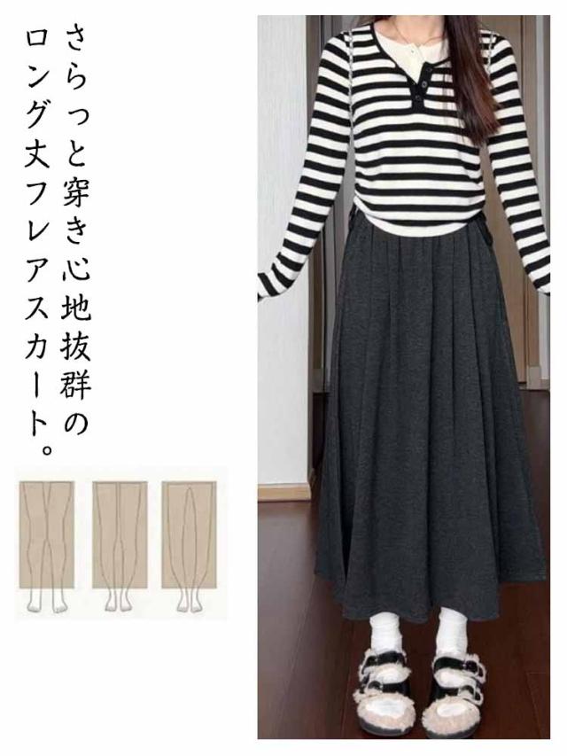 | さらっと穿き心地抜群のロング丈フレアスカート。 肌に優しく柔らかな生地を使用し、滑らかな肌触り。 Aラインの広がりで脚がほっそり見えて、身長が高く見えてスタイルUPの効果もある。 フレアが生み出す絶妙なボリューム感、メリハリのあるコーデになれる。 シンプルデザインでルームウェアでもお出かけでもデイリーに使えます♪ | |