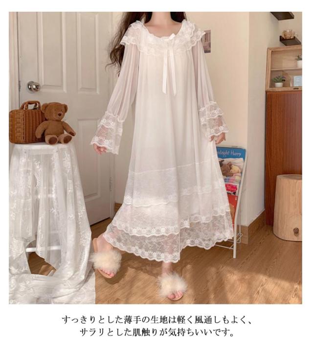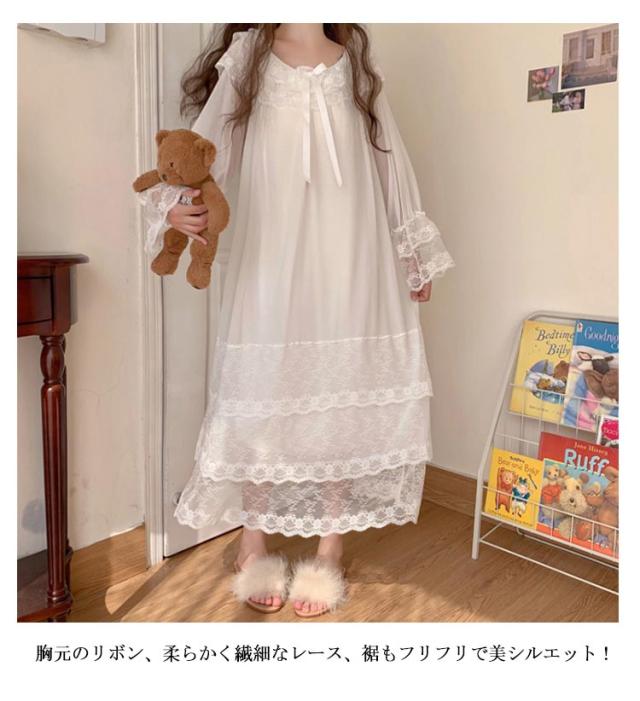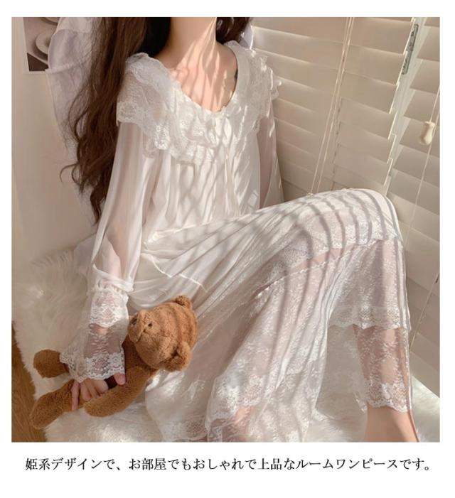 春 レース 送料無料 ロング 春夏 パジャマ ルームワンピース ルームウェア レディース ワンピース 夏 秋 お姫様 長袖 部屋着 寝間着ト 可愛い レース 部屋着 ルームウェア 大きいサイズ かわいい 大人 ネグリジェ