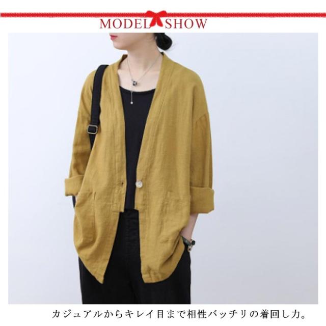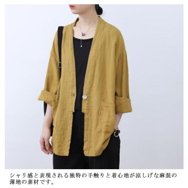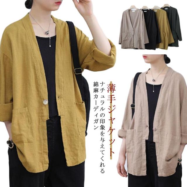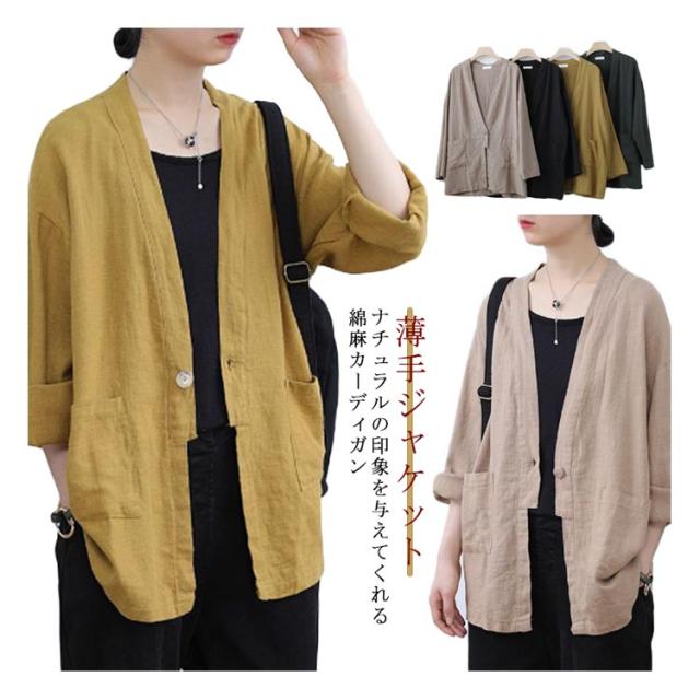 ナチュラル 春秋カーディガン リネンジャケット カーディガン ゆったり 夏カーディガン レディース リネンカーディガン 綿麻アウター 通勤 春 大人カーディガン 女らしい ゆるカーディガン 薄手ジャケット 体型カバー 冷房対策 アウター おしゃれ 通学 上質 上品 可愛