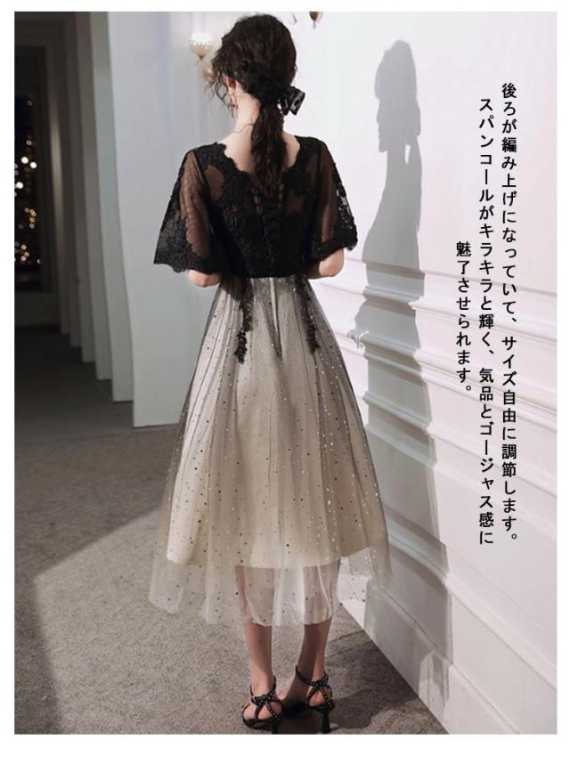 | 【選べる2丈】【S〜XXXL】結婚式・謝恩会・同窓会等のパーティに一着は持っておきたいドレスです。 後ろが編み上げになっていて、サイズ自由に調節します。 スパンコールがキラキラと輝く、気品とゴージャス感に魅了させられます。 シースルーレース地に優雅な花柄レースを施されて、華やかさをより、一層引き立て、上品な印象と共に優美なイメージあります。 また、さらっとした生地なので着心地も抜群!長時間の着用でもストレスフリーです♪ 袖付きなのでボレロなしでも着れるのも嬉しいポイント◎ | |