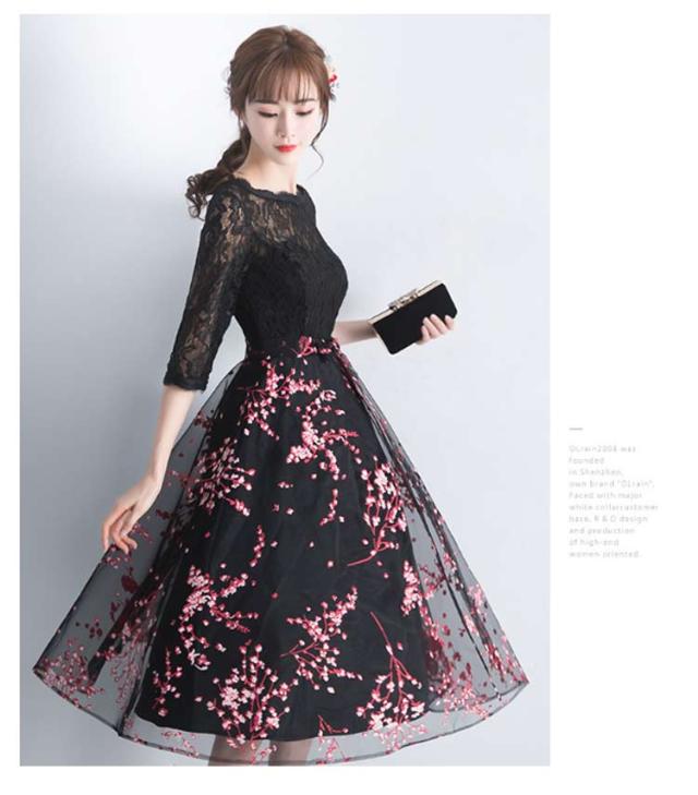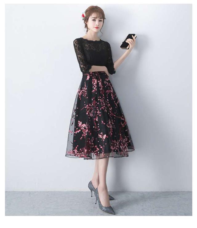 パーティードレス ウェディングドレス ブライズメイド 30代 ミモレ丈 袖あり 袖付き 演奏会 刺繍 成人式 二次会 花嫁 花柄 お呼ばれ 結婚式 入学式 披露宴 ワンピース ピアノ 発表会 同窓会 謝恩会 卒業式 二次会 20代 ドレス