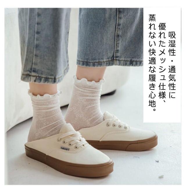 靴下 フリル クルー 蒸れない 女性用 シースルーソックス レース 透け感 おしゃれ くつした 薄手 春夏ソックス 黒 白 レディース ソックス ソックス 靴下 お出かけ ガーリー