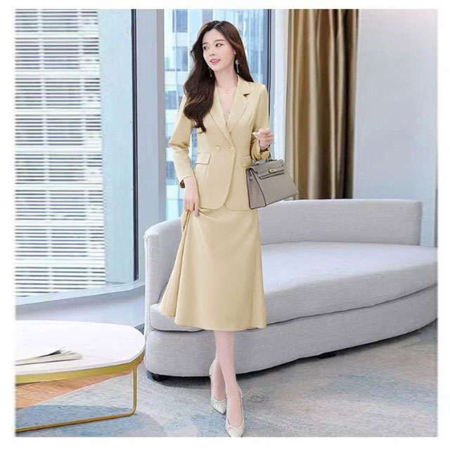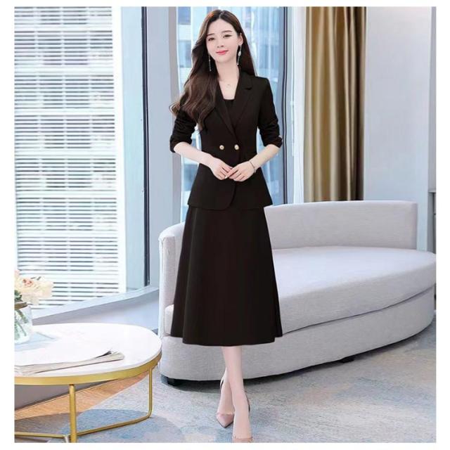 | 首元をきれいに見せる、Vネックジャケット+ワンピース。 シンプルながらも、袖を通すときれいなシルエットを実感いただけると思います。 ワンピースの衿元のUネックはジャケットとの衿開きのバランスにこだわって設定しています。 上品なロング丈でこっそり気になる部分もカバーOKです。 忙しい働く女性・ママにもぴったりなアンサンブルスーツです! | |