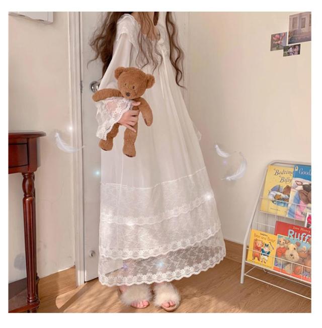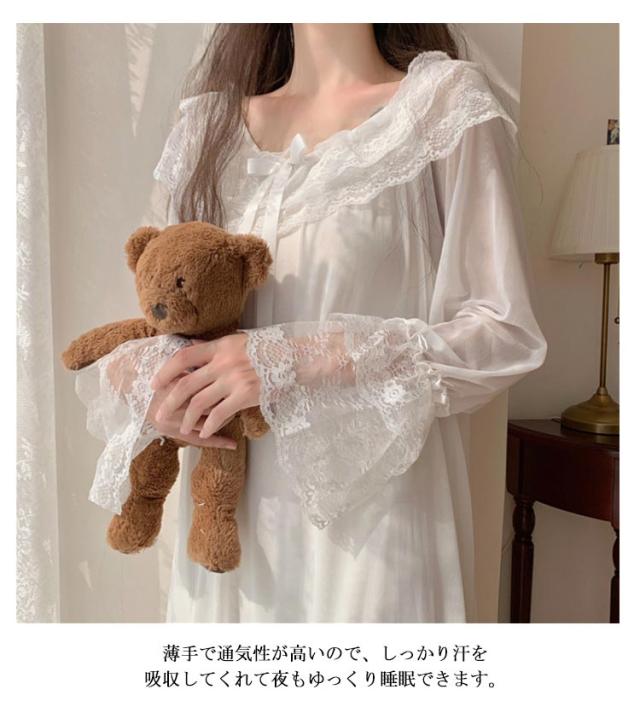 春夏 ルームウェア ルームワンピース ロング 送料無料 ワンピース レース 春 レディース レース 夏 秋 お姫様 長袖 部屋着 寝間着ト 可愛い ルームウェア 部屋着 パジャマ 大きいサイズ かわいい レース