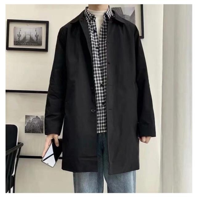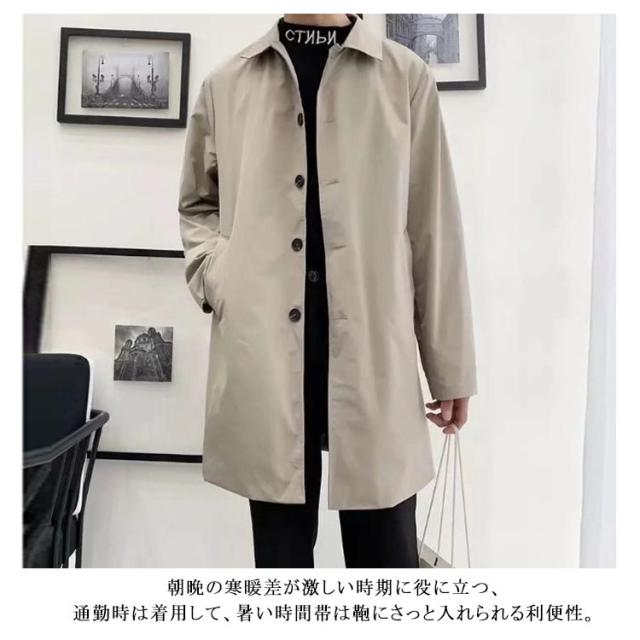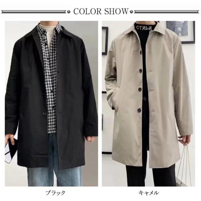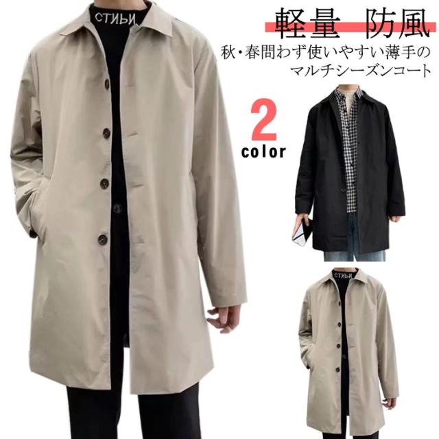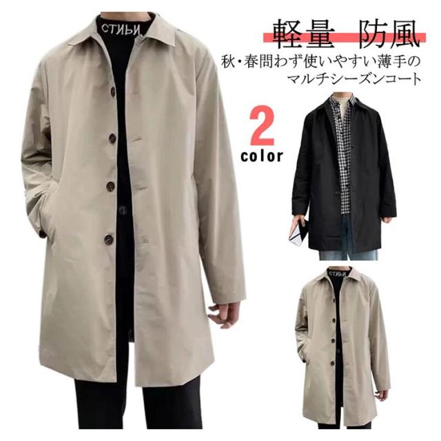 ステンカラーコート メンズ 薄手 秋 春 バルカラー ビジネスコート コート ビジネス ミドル丈 膝上 軽量 軽い 防風 スプリングコート 男性 メンズコート ビジネス 仕事 通勤 無地 定番 20代 30代 40代 黒 ベージュ