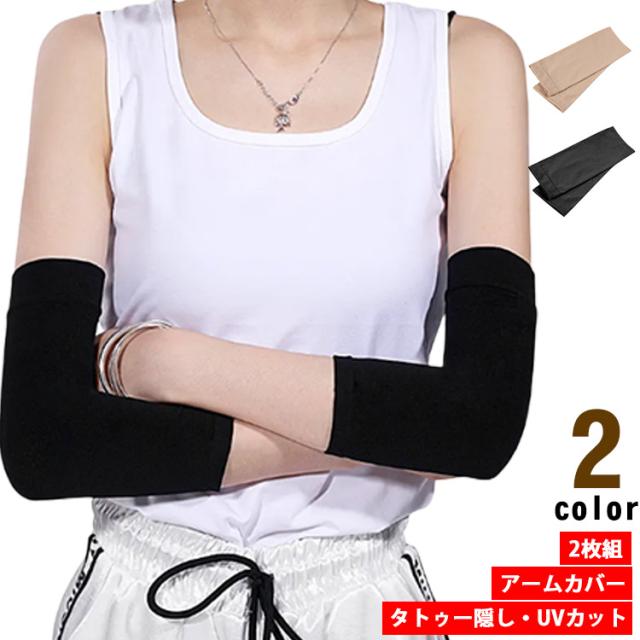 カバー メンズ 刺青隠し 2枚組 サポーター アームカバー 無地 クール 隠す アームカバー UVカット ストレッチ 接触冷感 日焼け対策 傷跡隠し タトゥー隠し レディース 男女兼用 薄手 黒