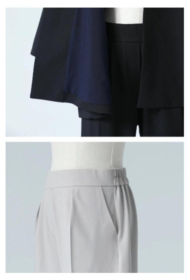 | サイズについての説明 | S 前/後着丈64/65cm 肩幅40cm 袖丈42cm バスト109cm ウエスト(ストレッチ)62-82cm ヒップ100cm 裾幅15.0cm パンツ総丈86cm M 前/後着丈65/66cm 肩幅41cm 袖丈43cm バスト113cm ウエスト(ストレッチ)66-86cm ヒップ104cm 裾幅16.5cm パンツ総丈88cm L 前/後着丈66/67cm 肩幅42cm 袖丈44cm バスト117cm ウエスト(ストレッチ)70-90cm ヒップ108cm 裾幅18.0cm パンツ総丈90cm ※サイズ表の実寸法は商品によって1-3cm程度の誤差がある場合がございます。 |