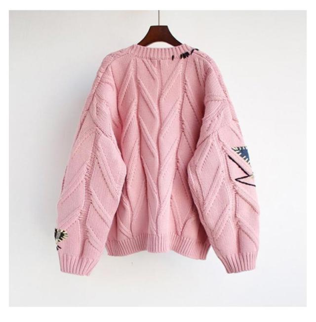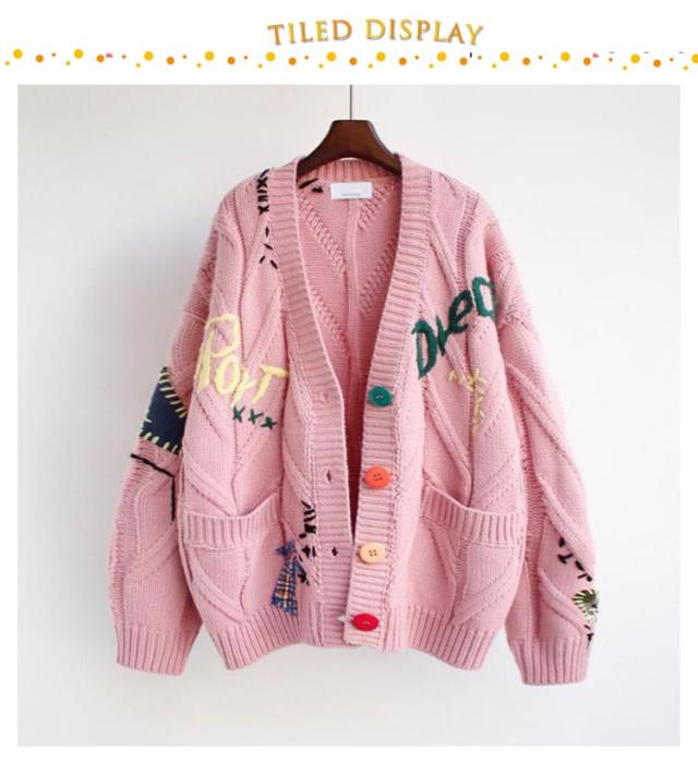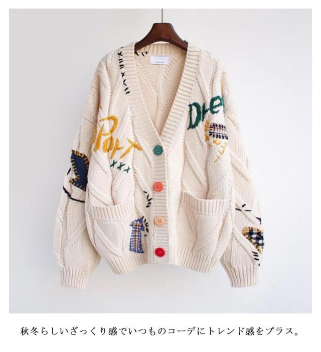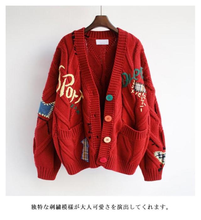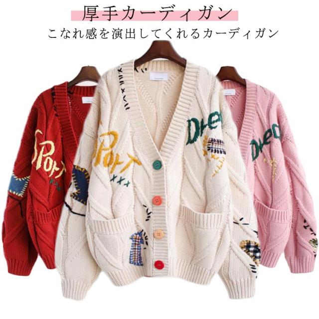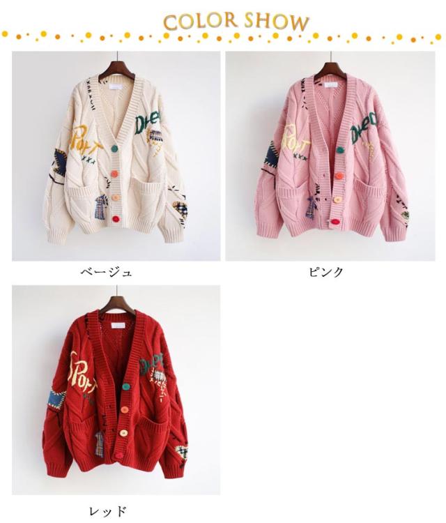 刺繍 カーディガン セーター 秋冬 秋 きれいめ 可愛い フリーサイズ レディース ニット アウター セーター ロゴ カラフル 長袖 ポップ デイリーコーデ 旅行 ドライブ トップス ゆったり 大人 秋冬 春秋 ピンク レッド
