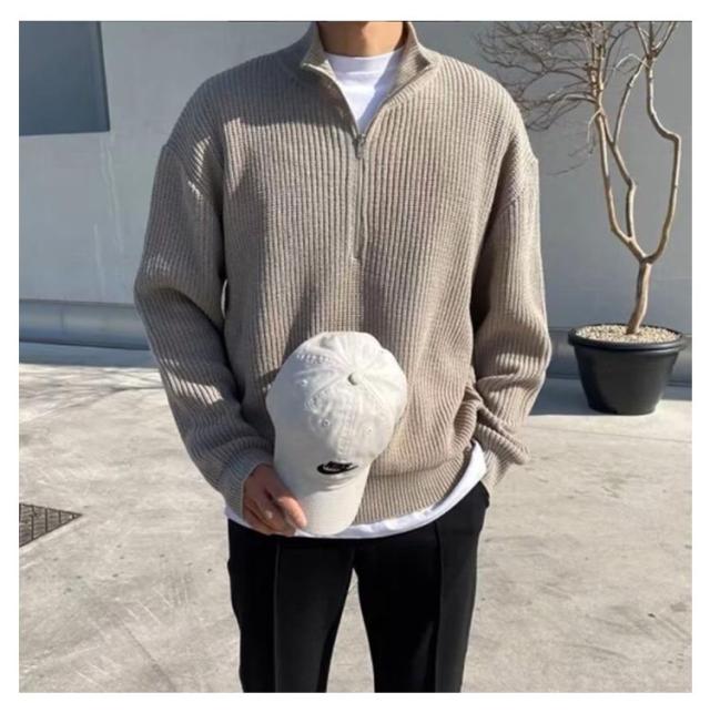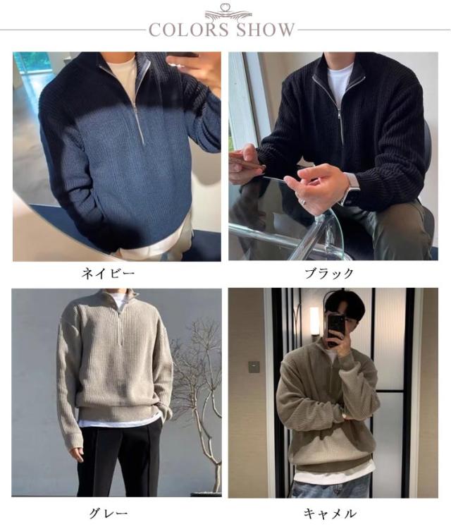 ハーフジップ ジップアップ プルオーバー リブニット メンズ ハイネック 長袖 トップス ニットセーター レディース トレーナー ハーフジップ カップル ハーフジップニット ゆったり 秋 冬 シンプル カジュアル 防寒 あったか 大きいサイズ 秋服 冬服