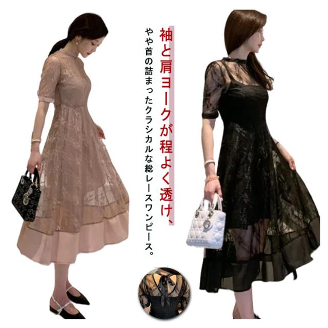 刺繍 ワンピース 透け感 花柄 同窓会 大人 シースルー 総レース 秋 可愛い 結婚式 ドレス パーティードレス オケージョン 1.5次会 春 袖あり 夏 冬 パーティ 二次会 謝恩会 レース 披露宴 お呼ばれ 結婚式 成人式 女子会 体型カバー 入学式