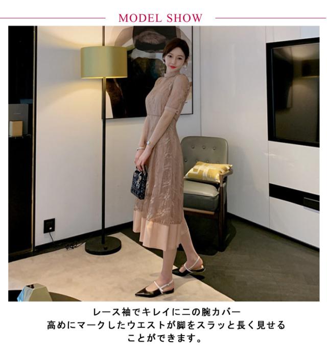 | 袖と肩ヨークが程よく透け、やや首の詰まったクラシカルな総レースワンピース。 レース袖でキレイに二の腕カバー 高めにマークしたウエストが脚をスラッと長く見せることができます。 結婚式の二次会やパーティーなどのお呼ばれはもちろん、お食事会や謝恩会まで幅広いシーンで活躍するパーティードレスです。 | |