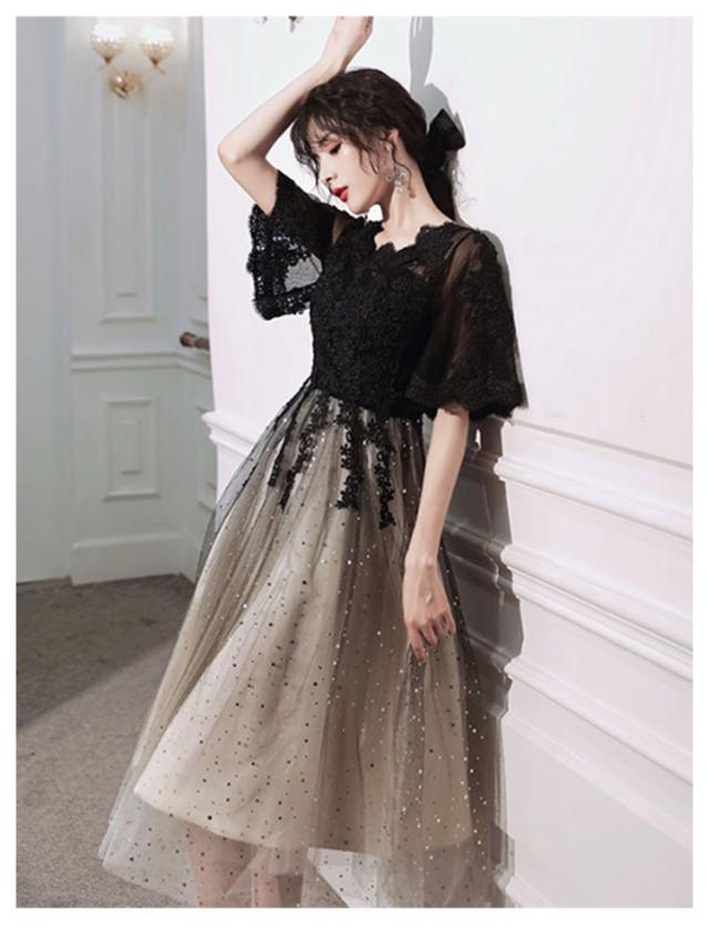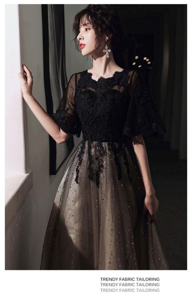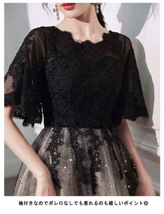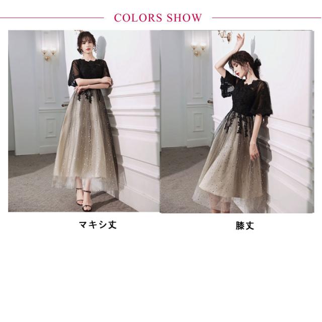 | 【選べる2丈】【S〜XXXL】結婚式・謝恩会・同窓会等のパーティに一着は持っておきたいドレスです。 後ろが編み上げになっていて、サイズ自由に調節します。 スパンコールがキラキラと輝く、気品とゴージャス感に魅了させられます。 シースルーレース地に優雅な花柄レースを施されて、華やかさをより、一層引き立て、上品な印象と共に優美なイメージあります。 また、さらっとした生地なので着心地も抜群!長時間の着用でもストレスフリーです♪ 袖付きなのでボレロなしでも着れるのも嬉しいポイント◎ | |