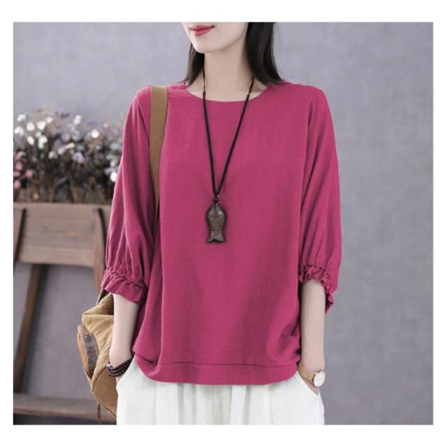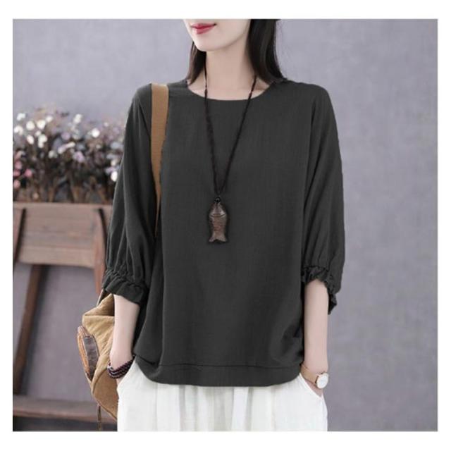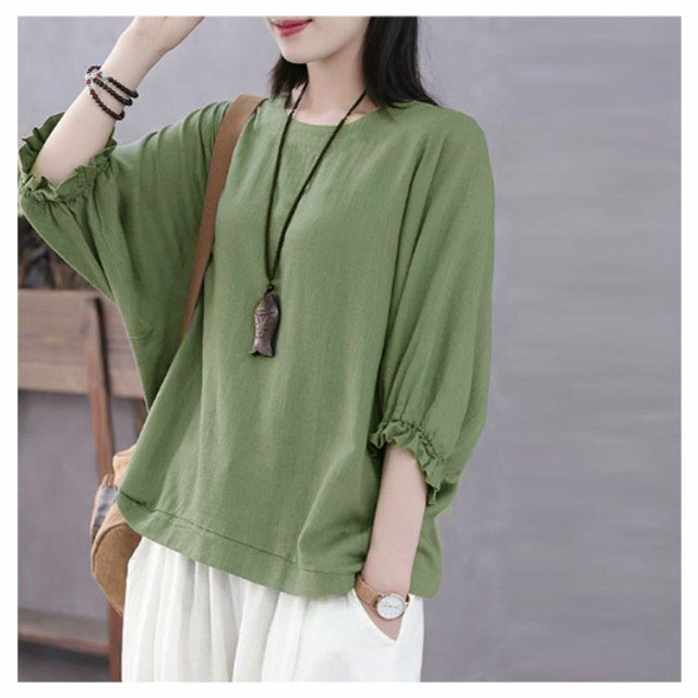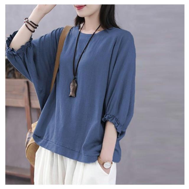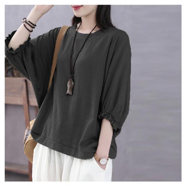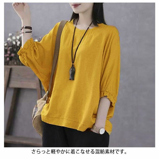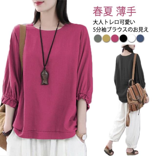 プルオーバー レディース ドルマンシルエット トップス tシャツ ブラウス 5分袖トップス 春夏 薄手 チュニック ラウンドネック シンプル 無地 大きサイズ 体型カバー ゆったり 夏服 夏物 おしゃれ カジュアル 送料無料